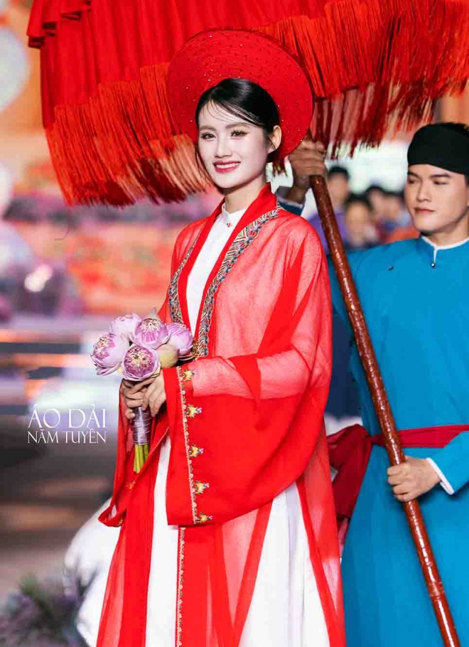 ✔ Kiểu dáng truyền thống: Thiết kế áo ngũ thân với năm tà áo tượng trưng cho tứ thân phụ mẫu và người mặc, mang ý nghĩa nhân văn sâu sắc.
