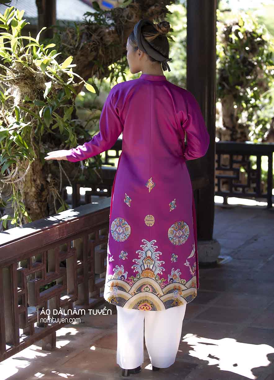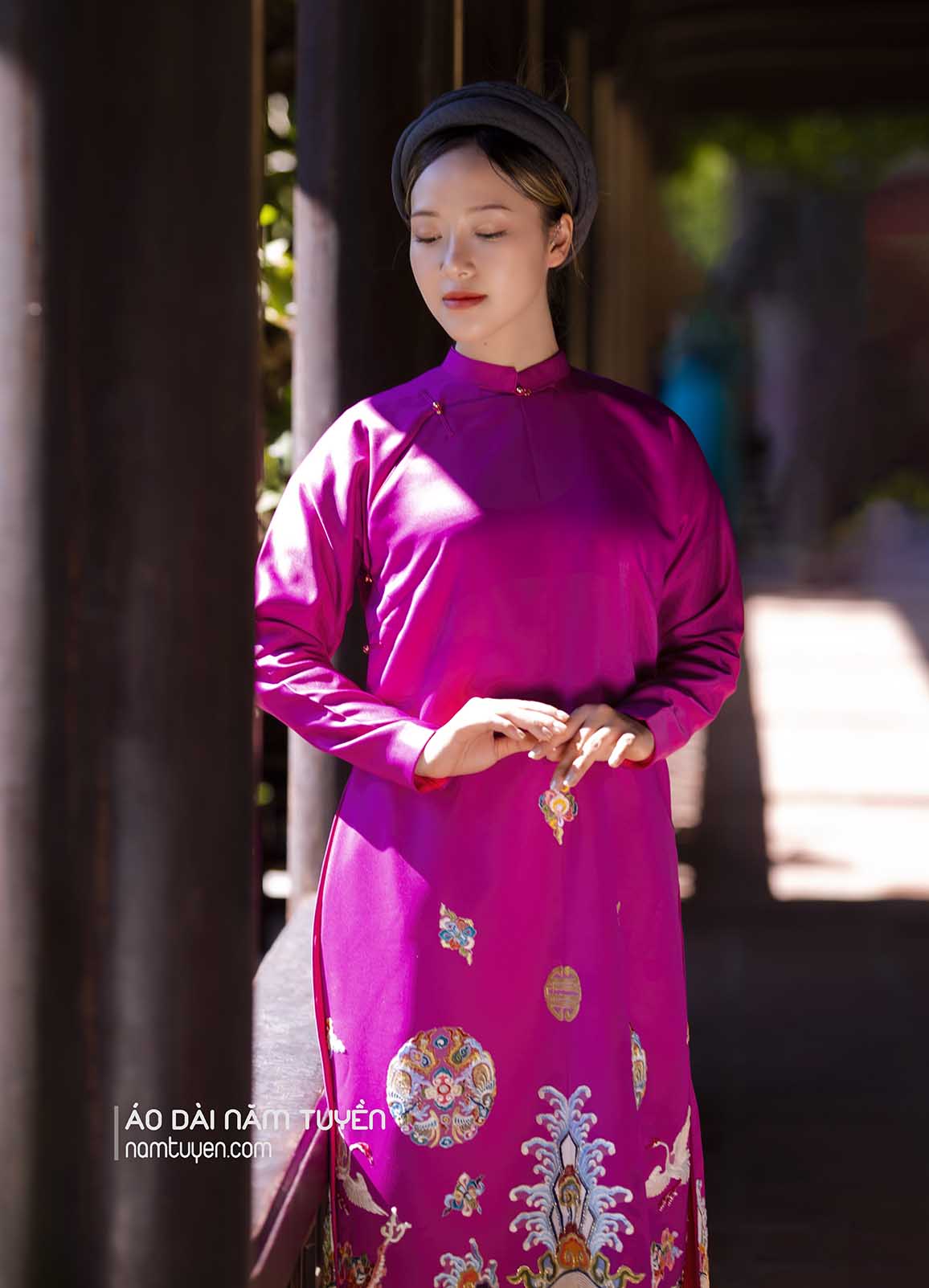 Áo dài ngũ thân nữ tím cà – trang phục truyền thống với tà rời thướt tha