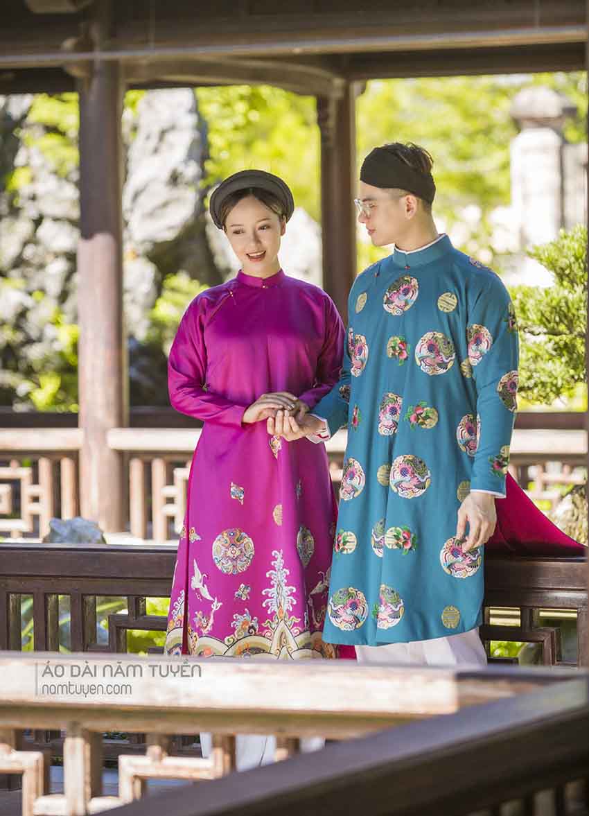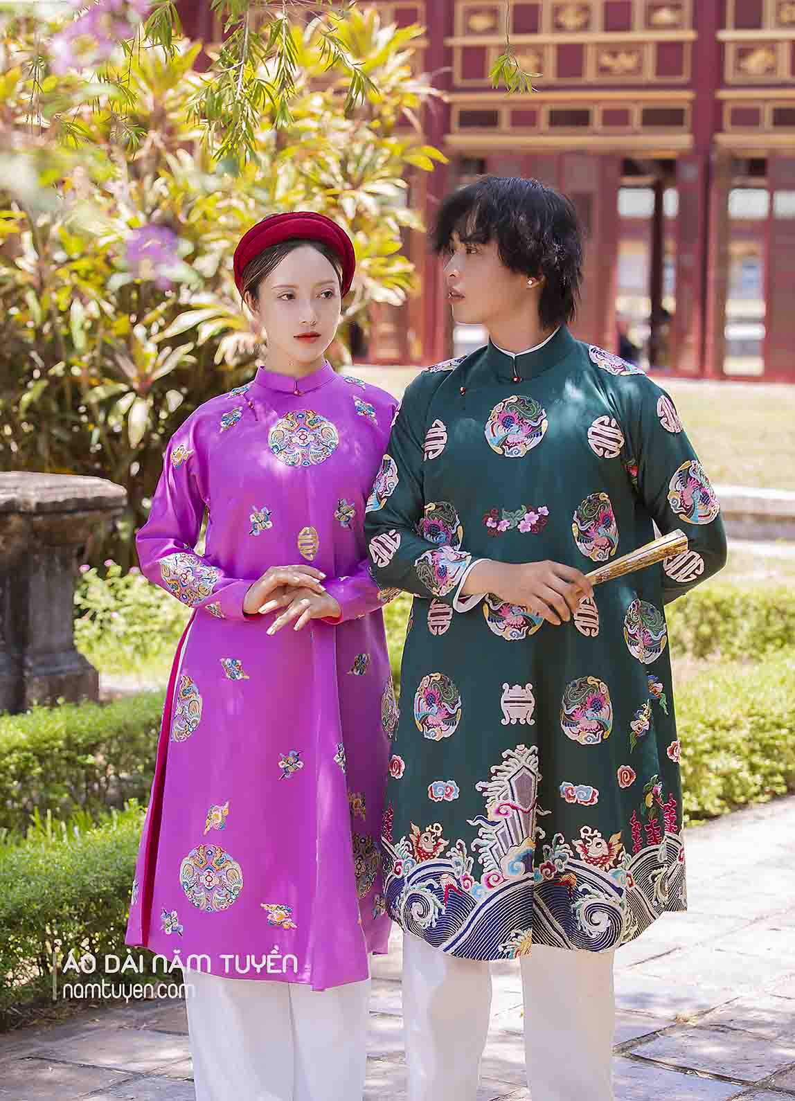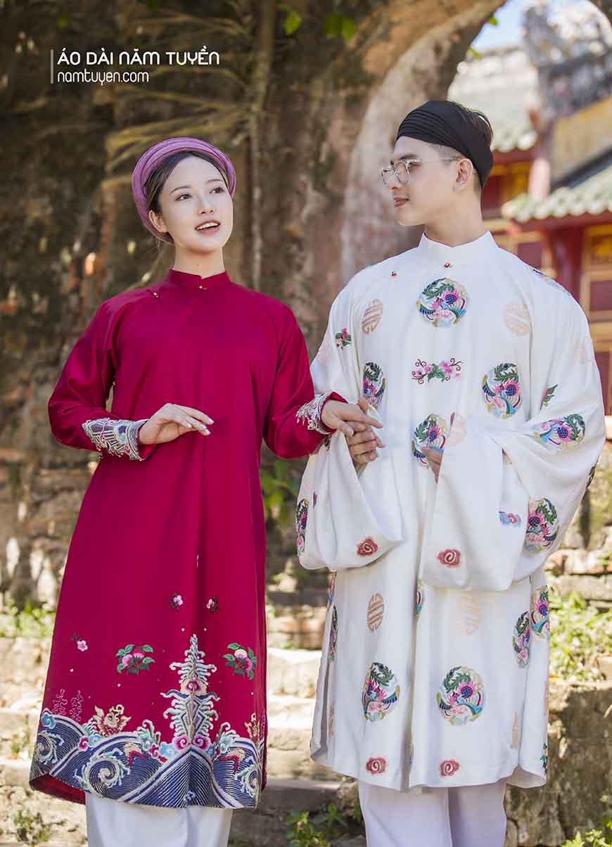 Áo Dài Ngũ Thân Nữ Thêu Hoa Văn Cung Đình