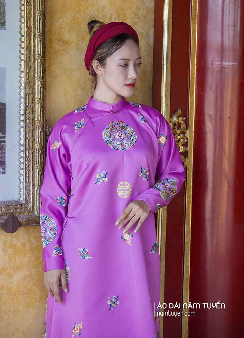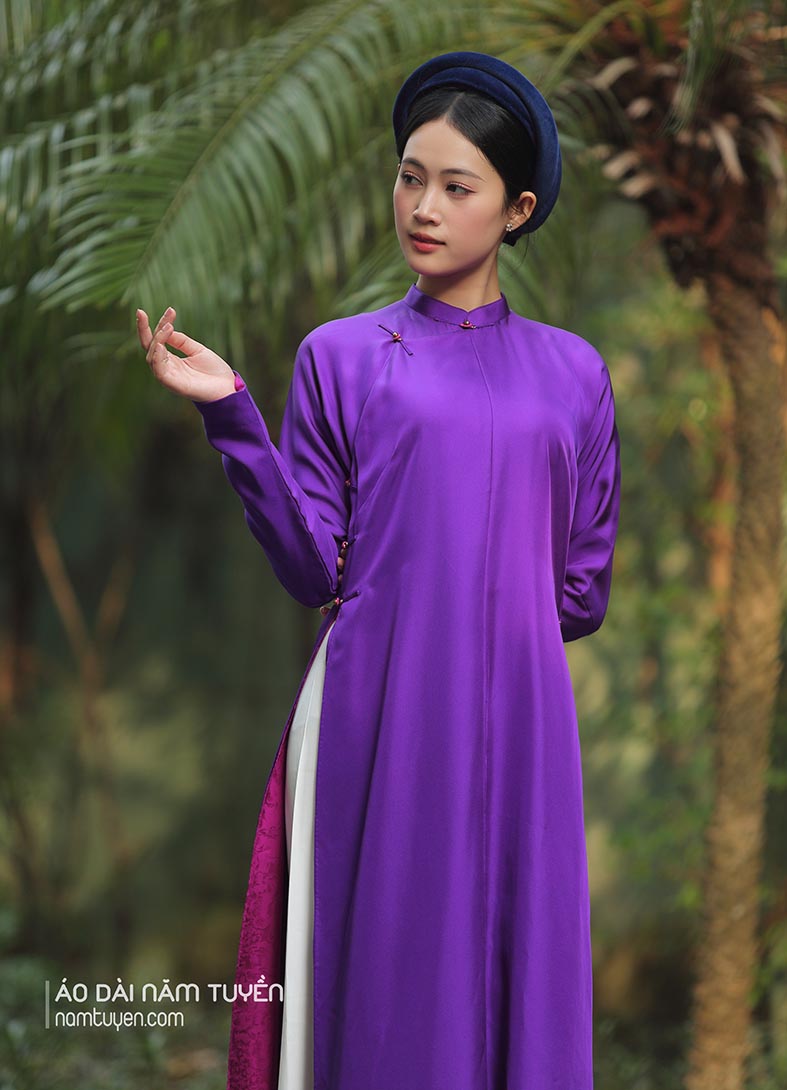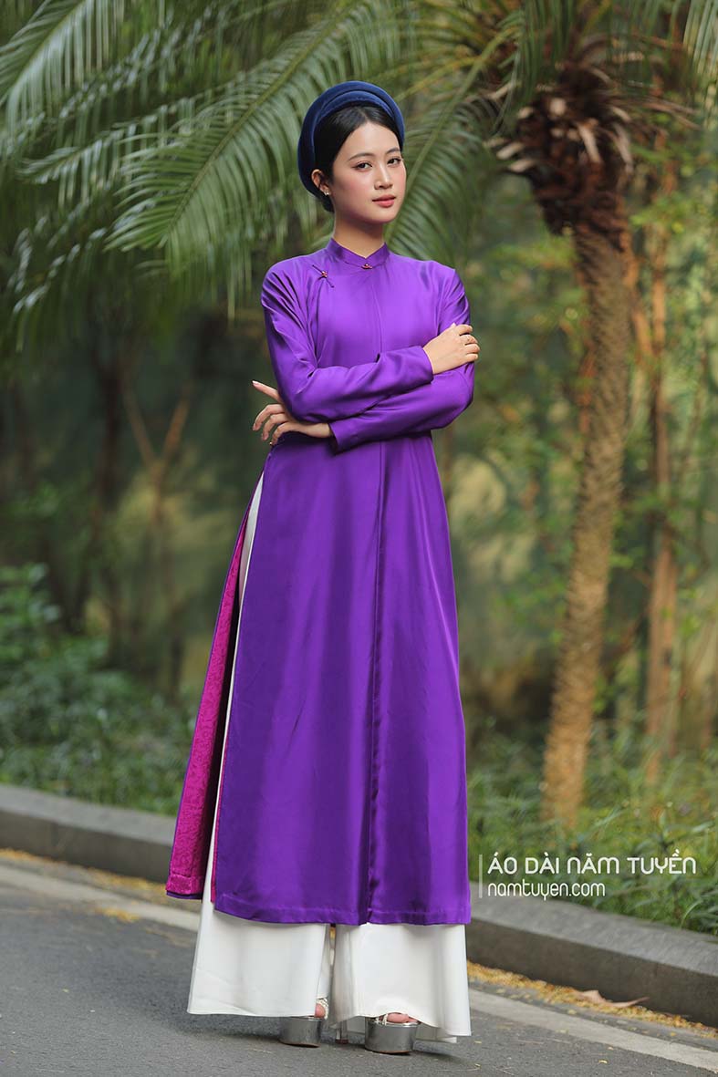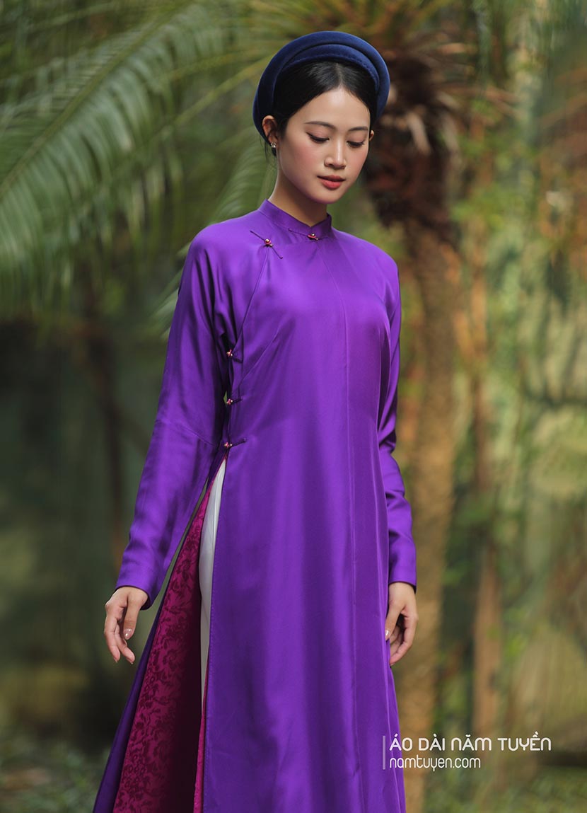 Áo dài nữ ngũ thân lụa tơ tằm tím Huế truyền thống