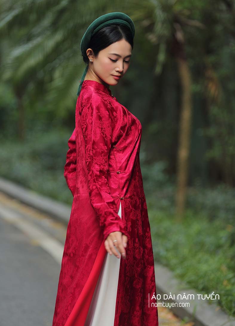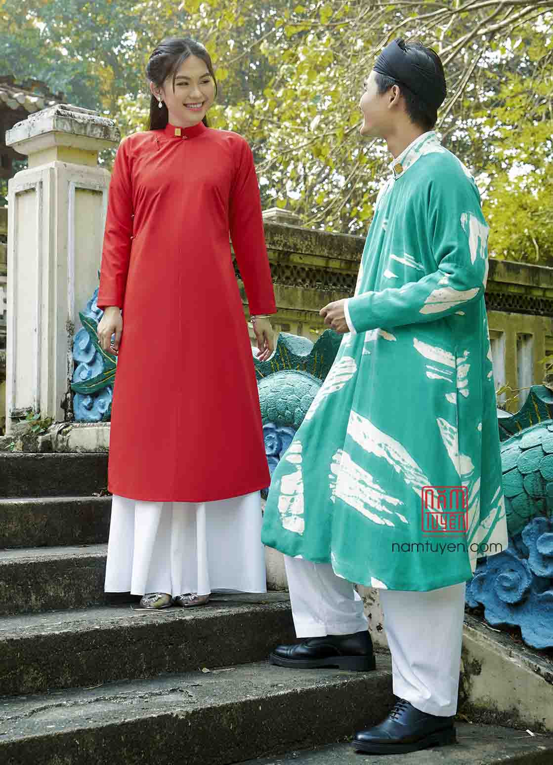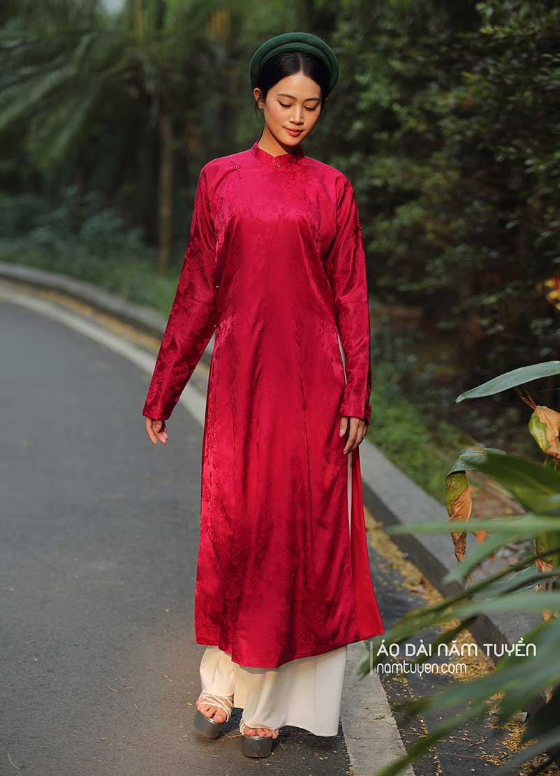 Áo ngũ thân đỏ đô 2 tà rời – lựa chọn trang phục truyền thống dành cho nữ