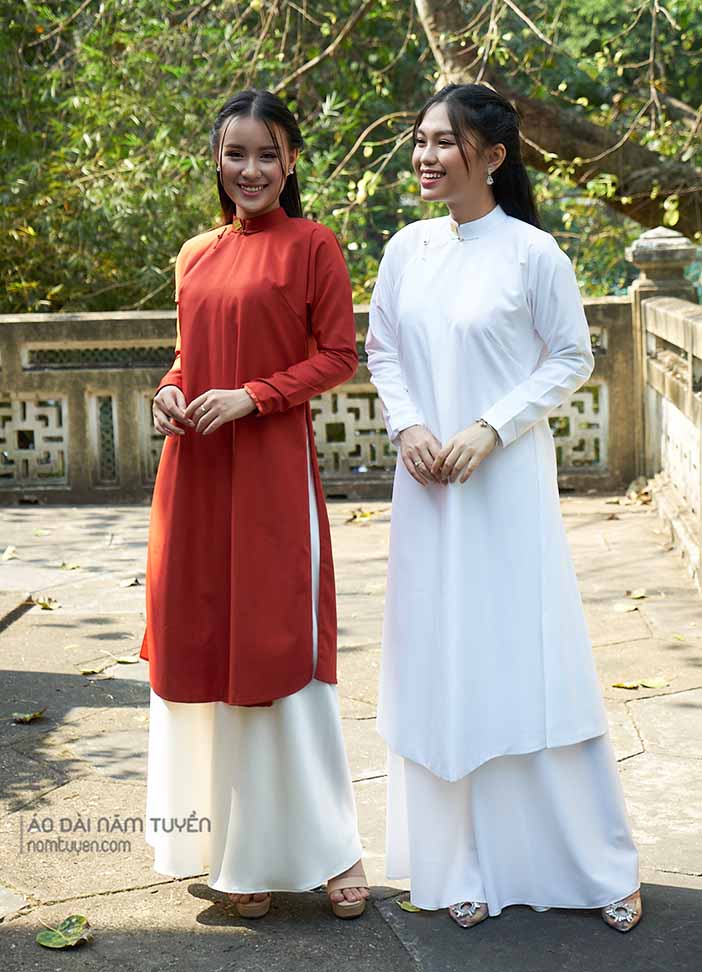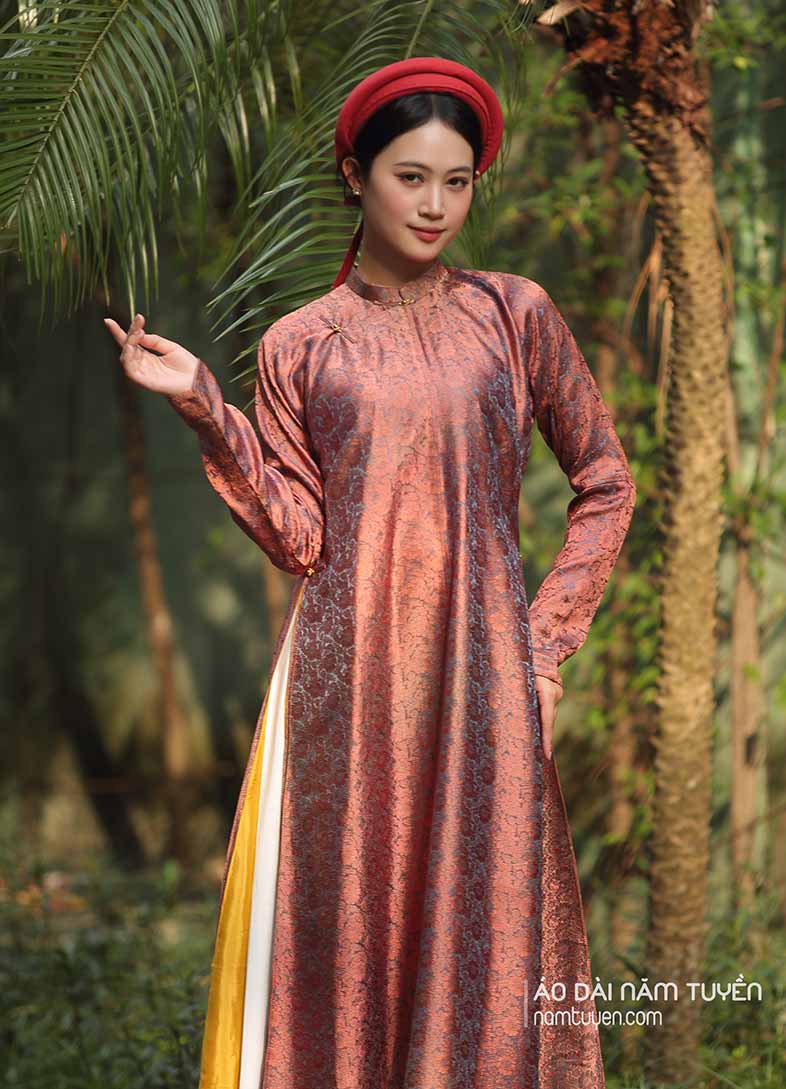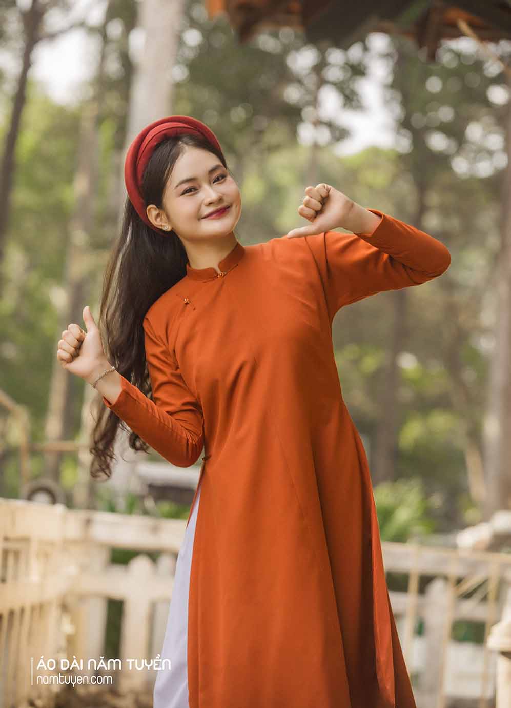 Áo dài ngũ thân nữ màu cam đất – sắc màu trầm ấm cho bạn yêu Việt phục