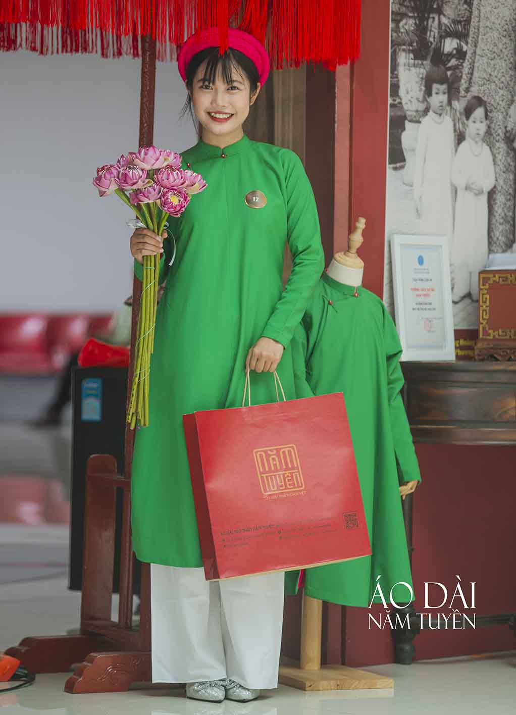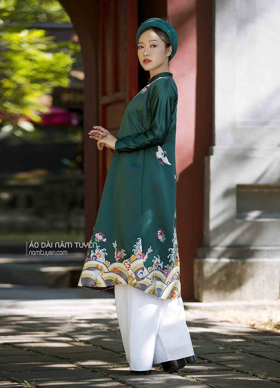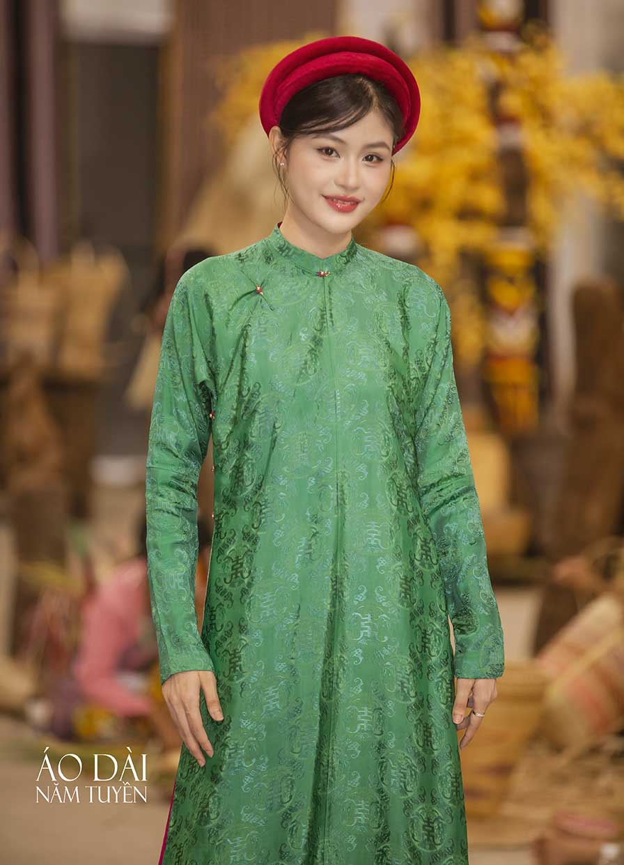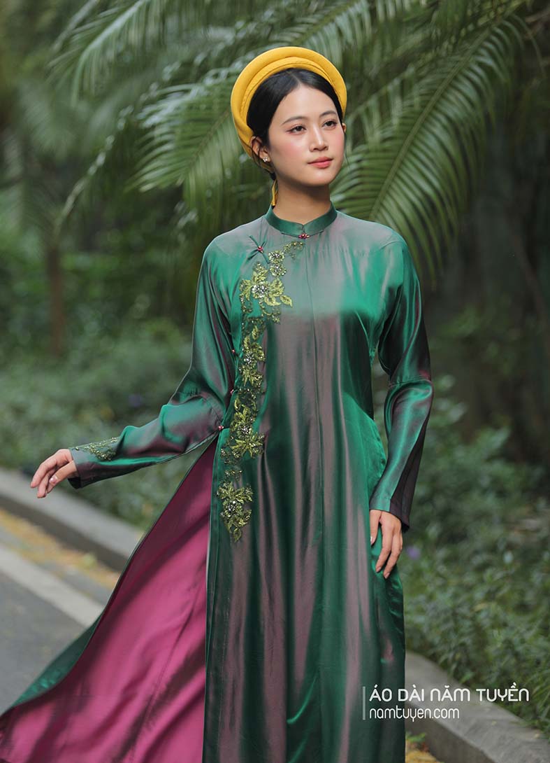 Áo dài ngũ thân nữ truyền thống màu xanh lá dáng tay chẽn - tôn dáng, thanh thoát