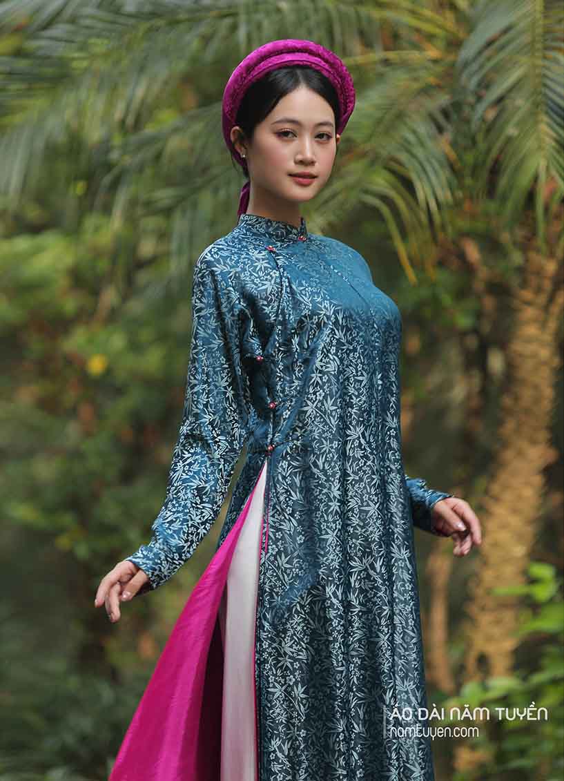 Áo dài Ngũ Thân Xanh Biển Truyền Thống – Việt phục dễ mặc Cho Nhiều Độ Tuổi