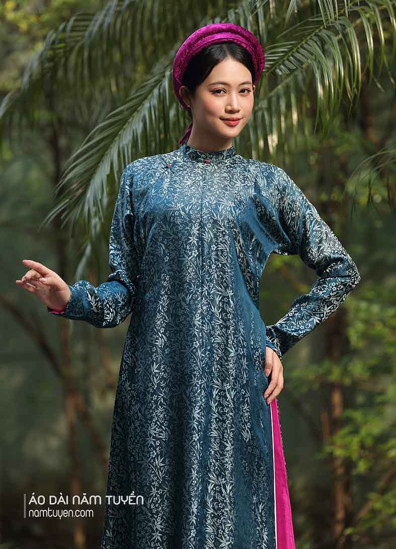 Áo dài truyền thống nữ lụa tơ tằm hoa lá tinh tế