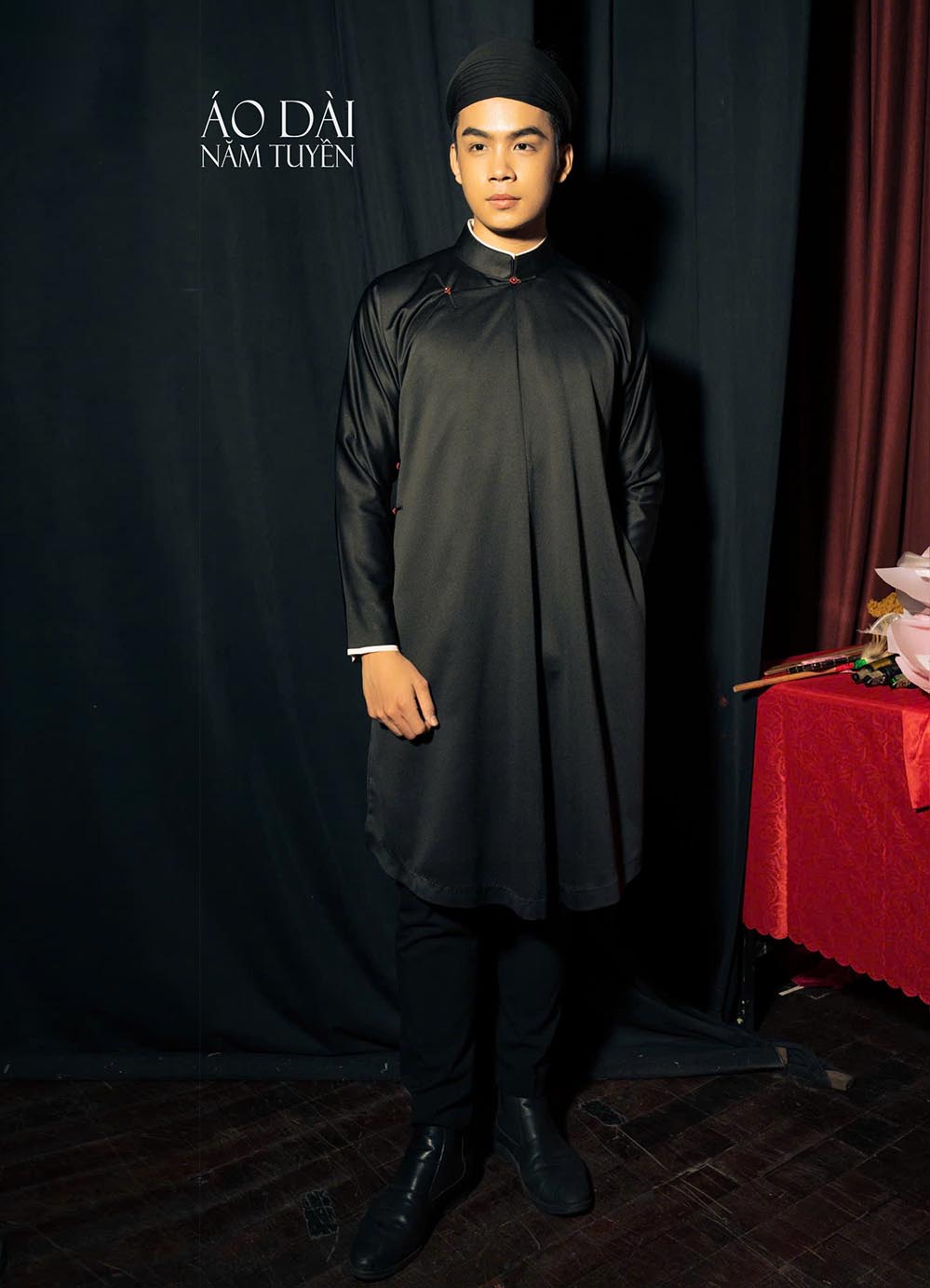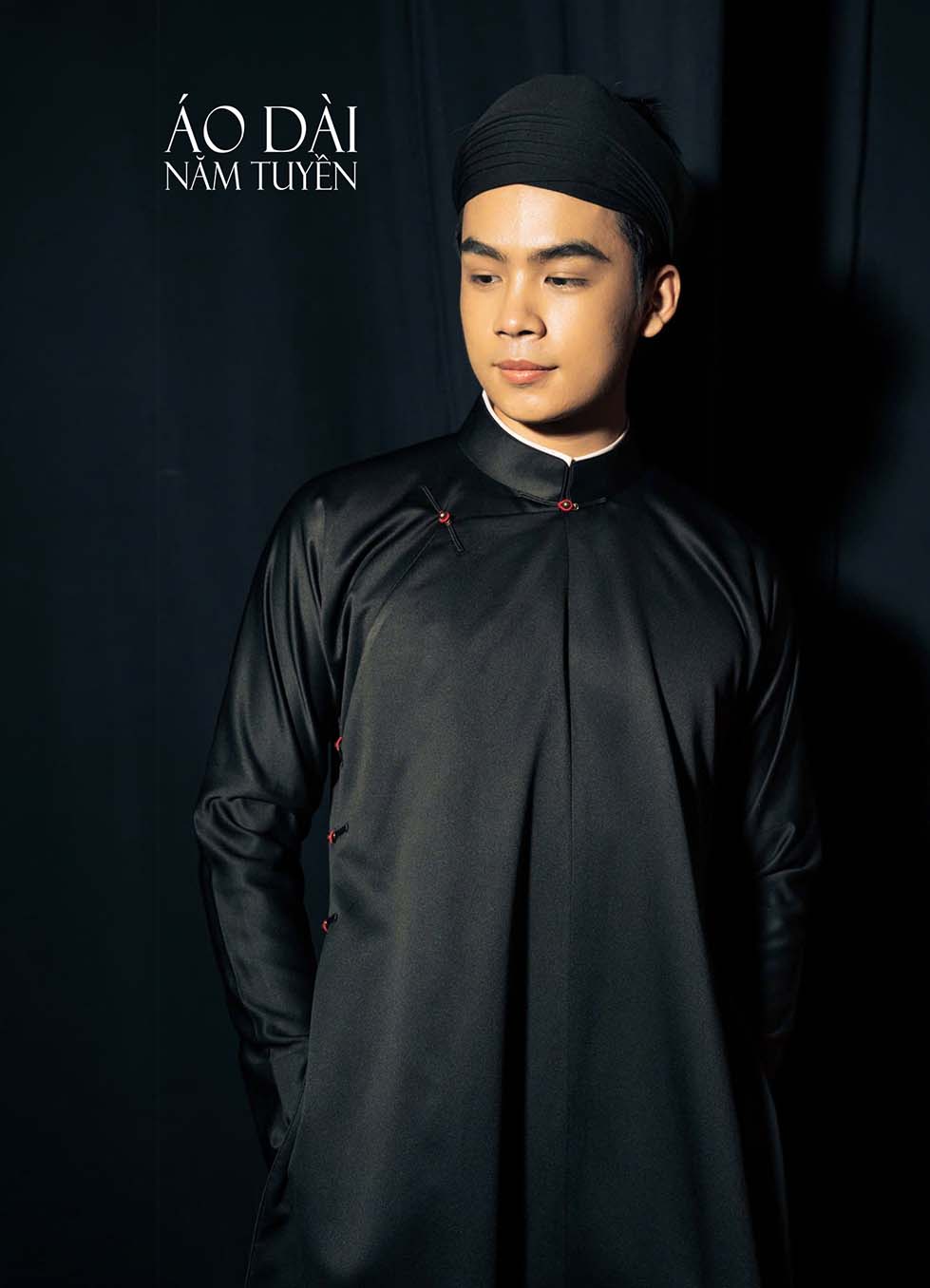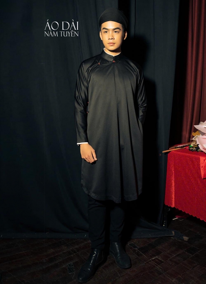 Màu đen trong áo dài ngũ thân nam thể hiện sự chín chắn, mạnh mẽ và quyền uy.