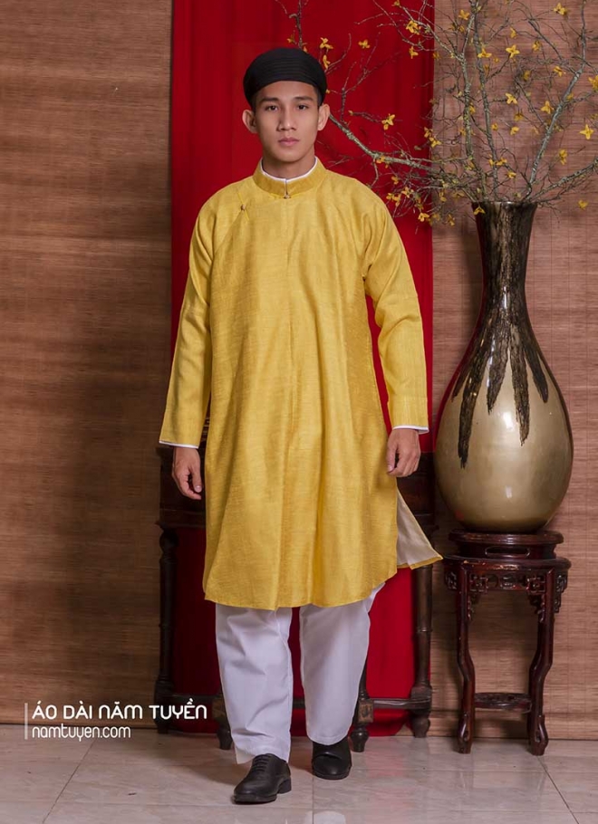 Áo dài nam đũi tơ tằm kiểu ngũ thân tay chẽn truyền thống