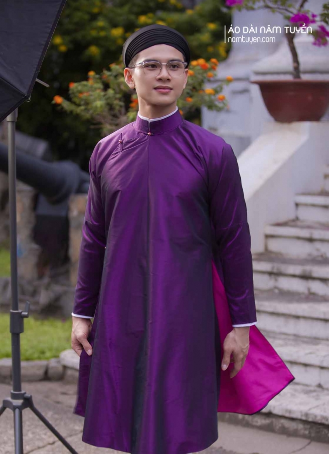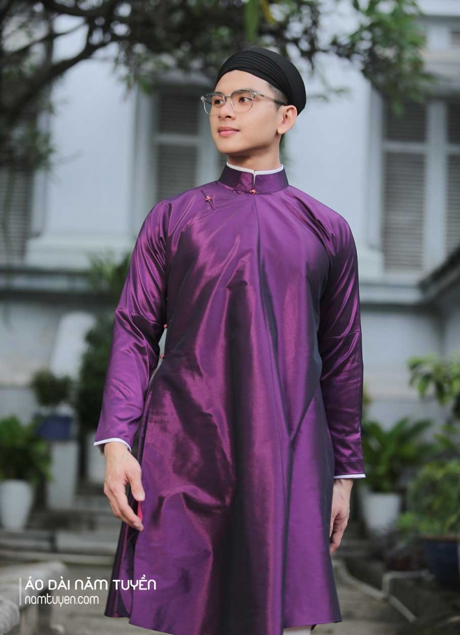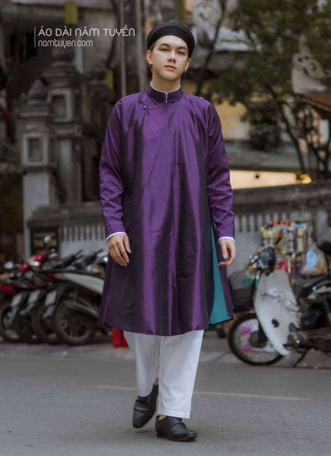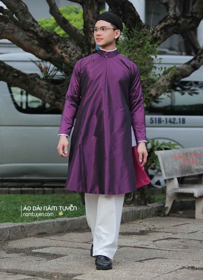 Áo dài nam màu tím Huế phong cách ngũ thân tay chẽn