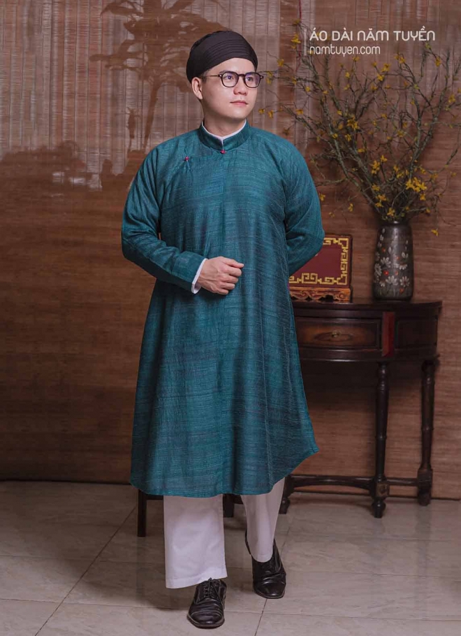 Áo dài nam truyền thống chất liệu đũi tơ tằm