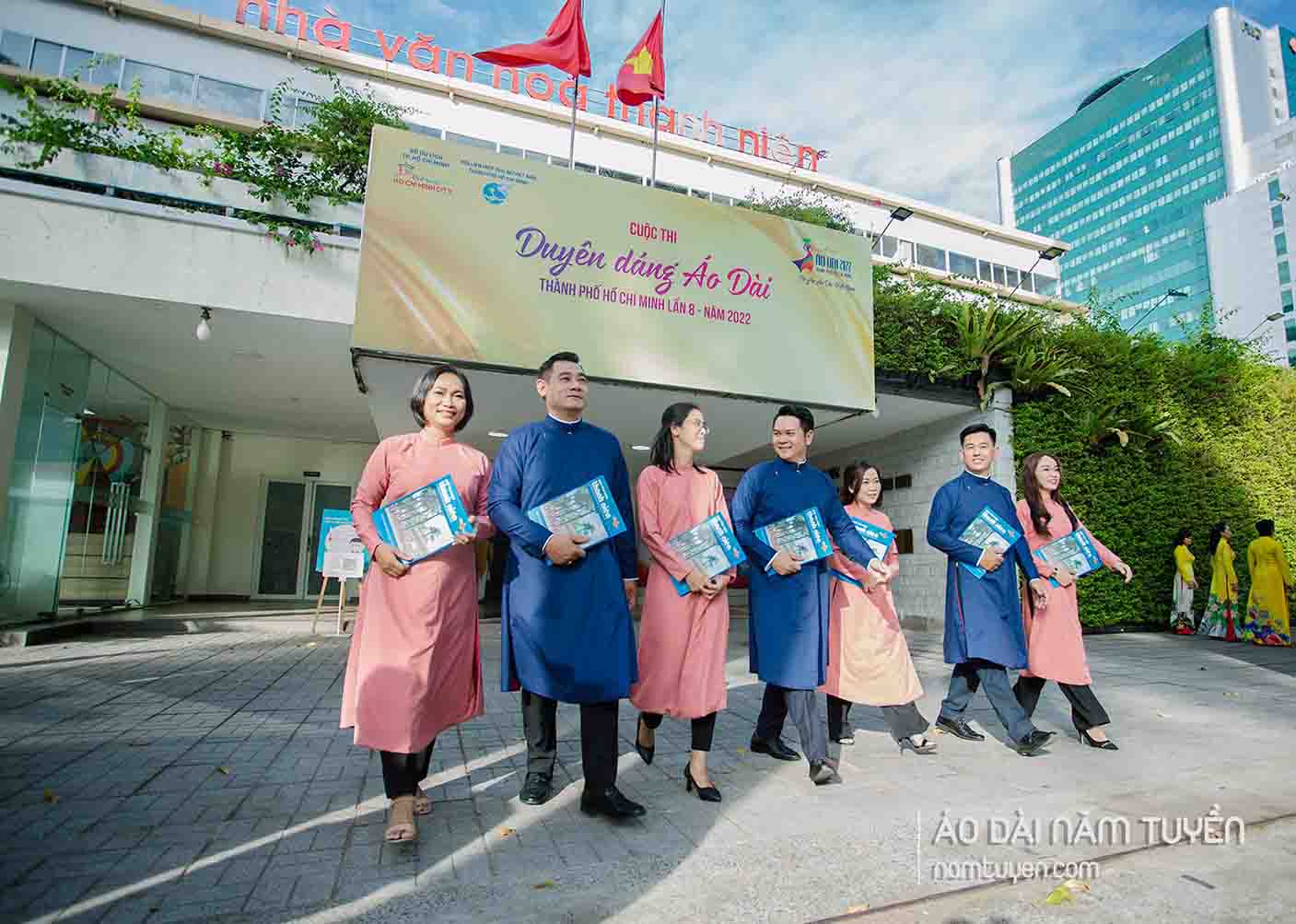 Áo dài Năm Tuyền được cán bộ Nhà Văn hóa Thanh niên TP.HCM lựa chọn may mặc trong các sự kiện văn hóa, chào cờ đầu tuần góp phần tôn vinh bản sắc Việt qua cổ phục ngũ thân.