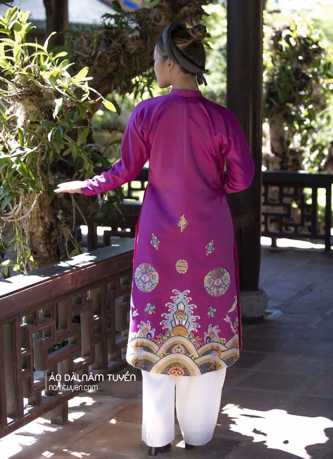Áo dài ngũ thân của Năm Tuyền luôn được lựa chọn trong những bối cảnh đề cao giá trị truyền thống và hình ảnh phụ nữ Việt: