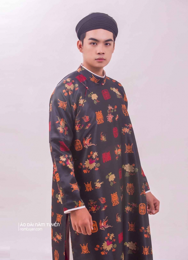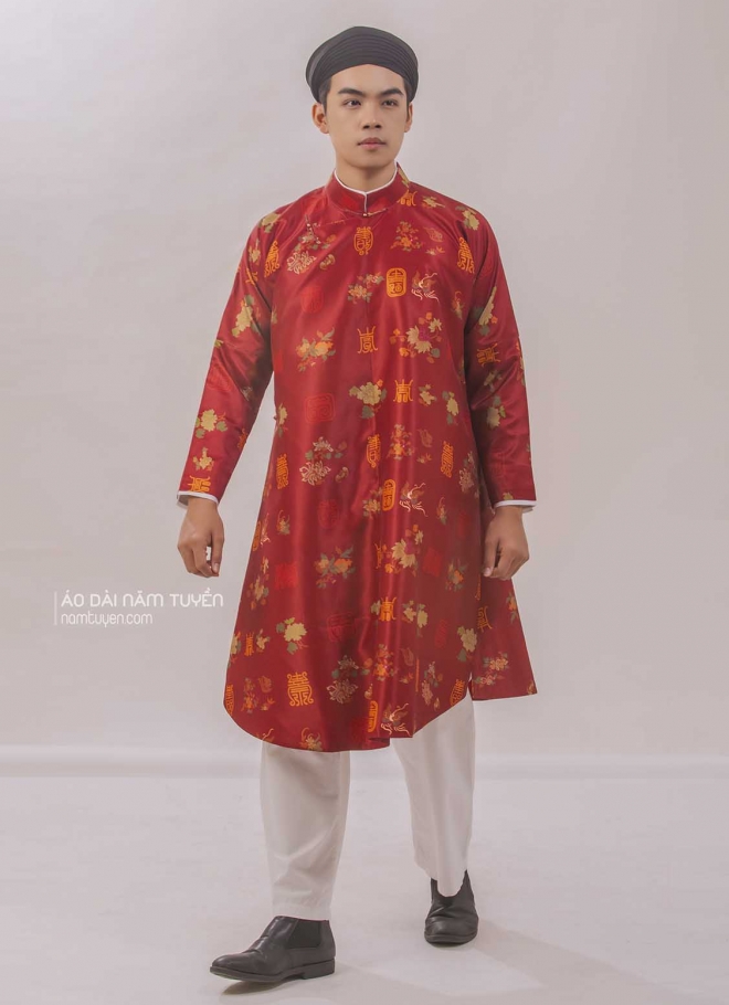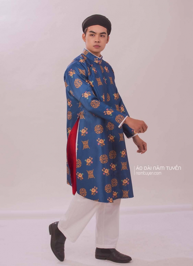 Áo dài ngũ thân nam hoa văn in họa tiết xưa