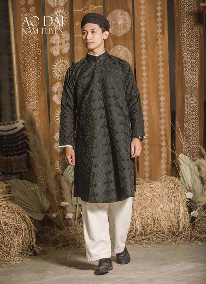 Áo dài ngũ thân nam gấm, lụa có họa tiết là những thiết kế: