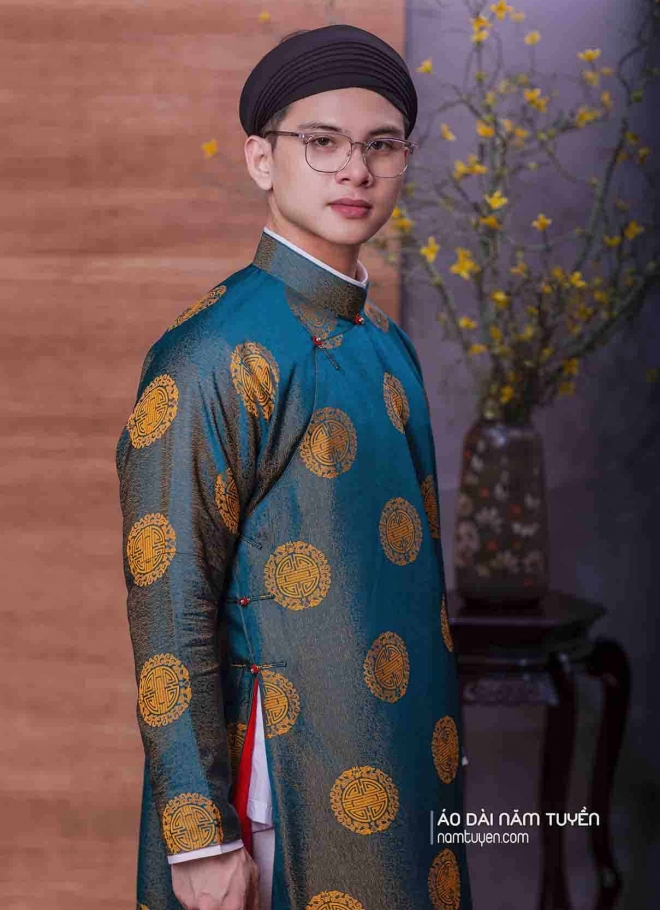 Áo dài ngũ thân nam gấm, lụa có họa tiết là những thiết kế: