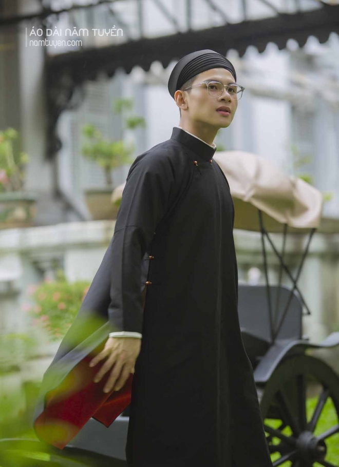 Cấu trúc, phom dáng và các chi tiết được nghiên cứu kỹ bởi nghệ nhân Năm Tuyền, thể hiện tính nguyên bản của áo ngũ thân nhưng vẫn hài hòa cho người mặc hiện đại.