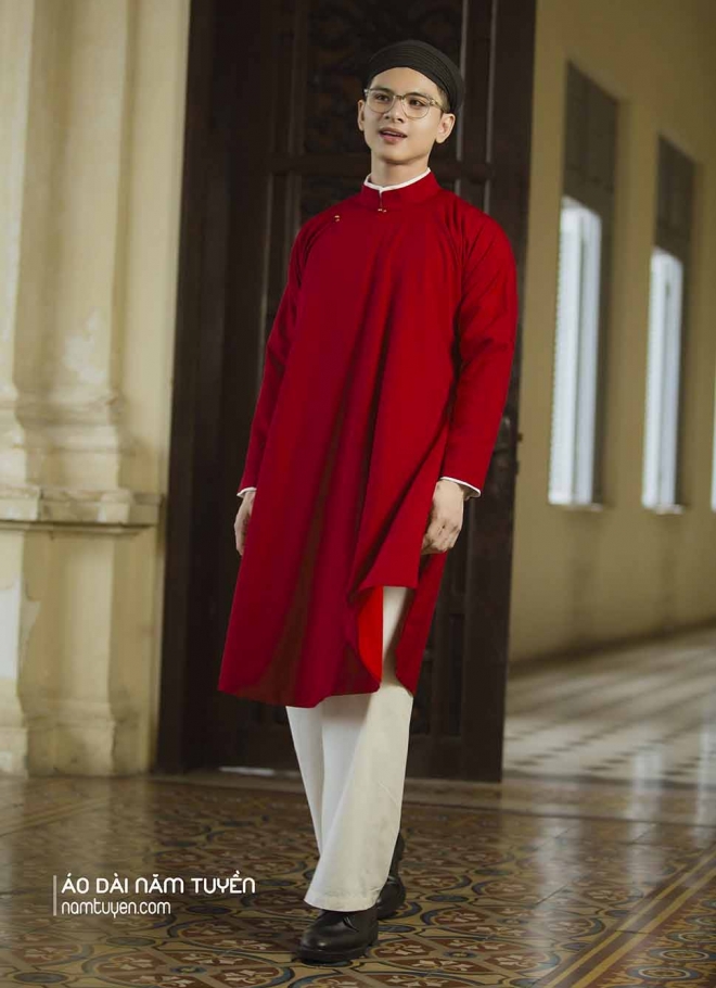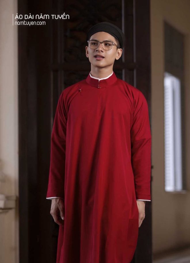 Cấu trúc, phom dáng và các chi tiết được nghiên cứu kỹ bởi nghệ nhân Năm Tuyền, thể hiện tính nguyên bản của áo ngũ thân nhưng vẫn hài hòa cho người mặc hiện đại.