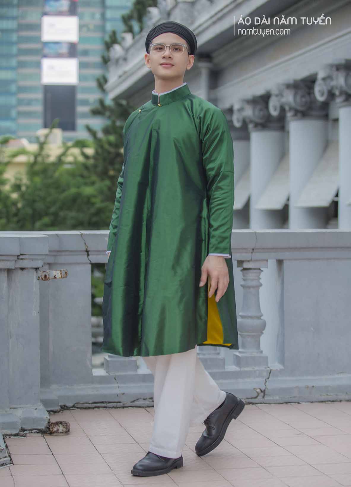 • Vạt áo dài quá gối, phom đứng trang nghiêm.