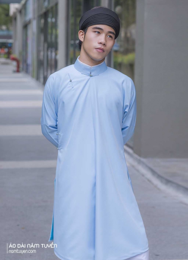 Áo Dài Ngũ Thân Nam truyền thống Màu xanh biển trẻ trung