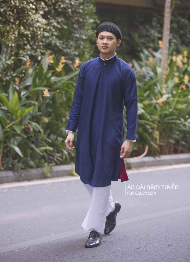 Vạt áo dài quá gối, phom đứng trang nghiêm.