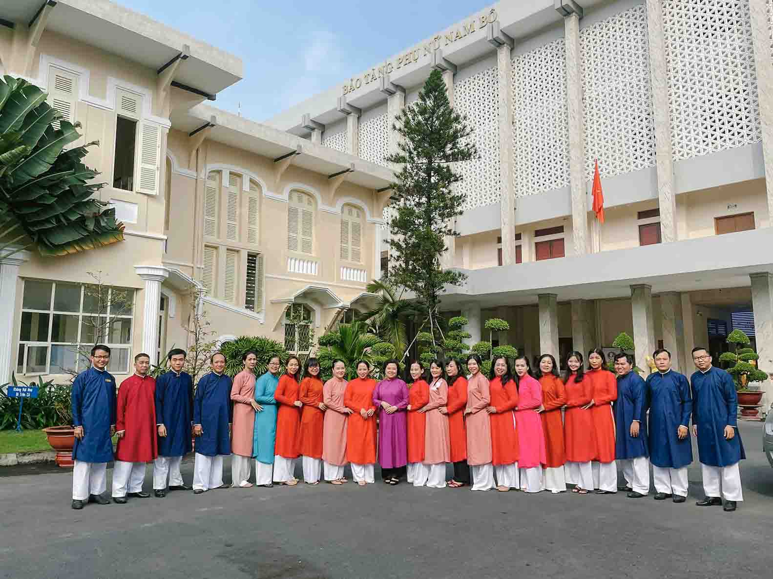 Bảo tàng Phụ nữ Nam Bộ là nơi lưu giữ nhiều giá trị văn hóa, lịch sử liên quan đến vai trò của người phụ nữ trong xã hội Việt Nam. Khi các cán bộ bảo tàng khoác lên mình áo dài ngũ thân Năm Tuyền, không chỉ thể hiện sự trang trọng, lịch thiệp trong công tác chuyên môn, mà còn lan tỏa tinh thần tự hào dân tộc, đề cao giá trị truyền thống. Mỗi thiết kế áo đều được nghệ nhân Năm Tuyền chăm chút từ chất liệu, màu sắc đến từng đường may – phù hợp với khí chất thanh lịch, kín đáo và uy nghi của đội ngũ làm văn hóa.