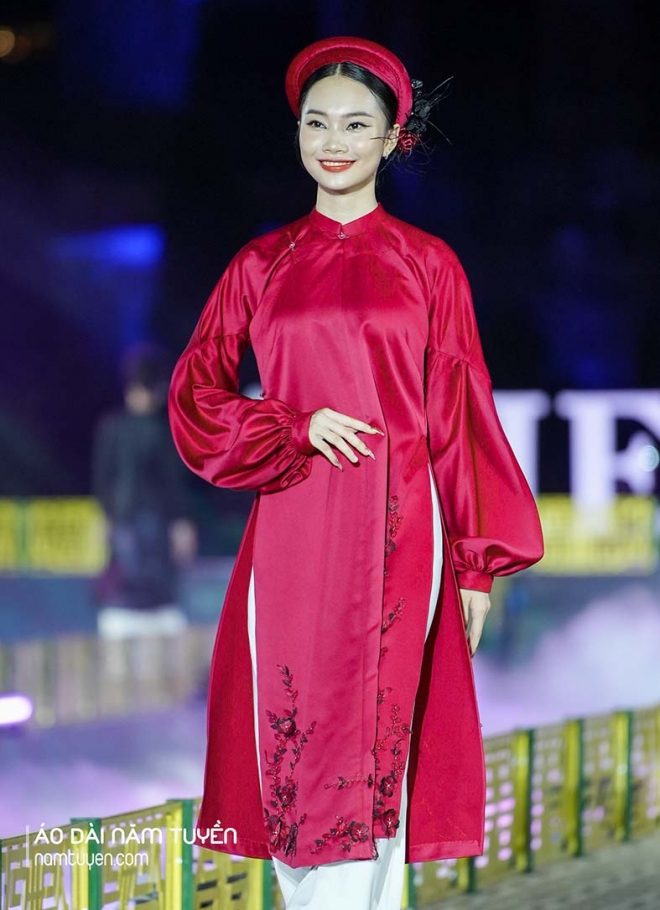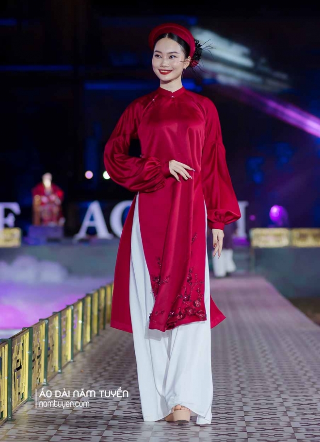 Áo dài ngũ thân nữ đỏ – kiểu tay thiết kế thời trang, tôn dáng