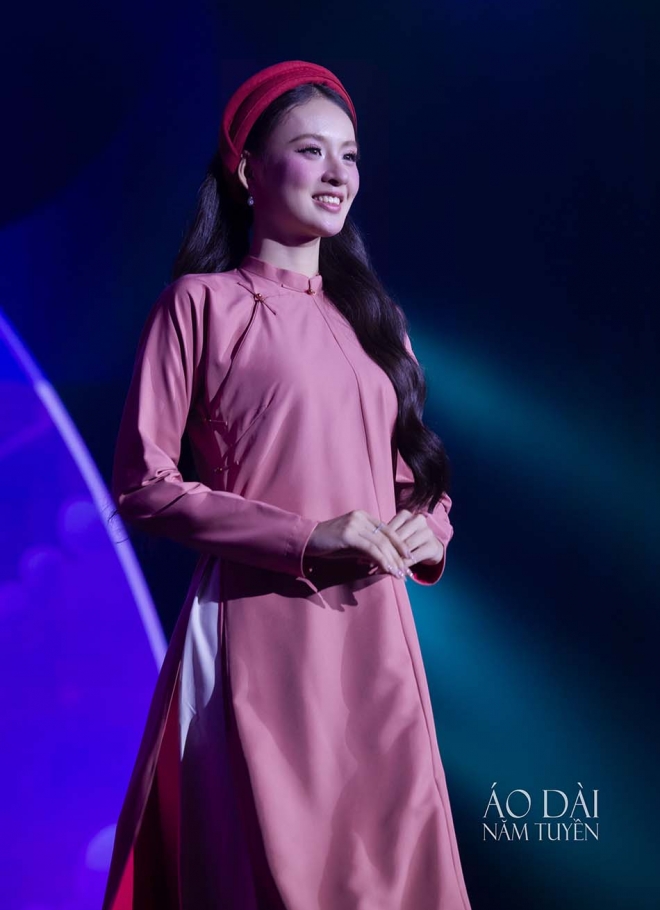 Cấu trúc, phom dáng và các chi tiết được nghiên cứu kỹ bởi nghệ nhân Năm Tuyền, thể hiện tính nguyên bản của áo ngũ thân nhưng vẫn hài hòa cho người mặc hiện đại.