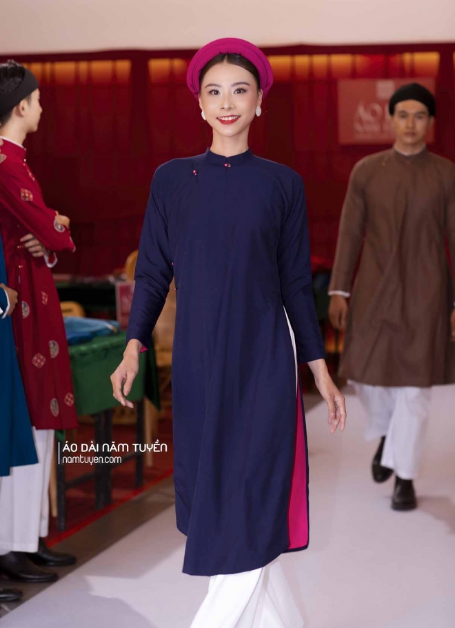 Cấu trúc, phom dáng và các chi tiết được nghiên cứu kỹ bởi nghệ nhân Năm Tuyền, thể hiện tính nguyên bản của áo ngũ thân nhưng vẫn hài hòa cho người mặc hiện đại.