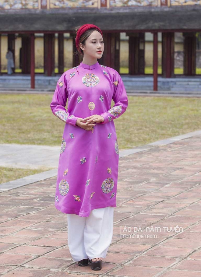 Áo dài ngũ thân của Năm Tuyền luôn được lựa chọn trong những bối cảnh đề cao giá trị truyền thống và hình ảnh phụ nữ Việt: