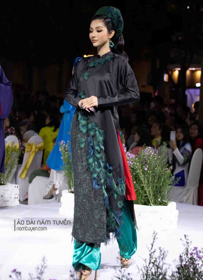 Áo dài nữ ngũ thân truyền thống họa tiết lông công
