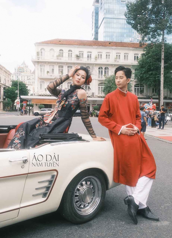 Tất cả được kết hợp hoàn hảo với form áo ôm nhẹ vòng ngực – eo, tôn dáng chuẩn nhưng vẫn giữ chất thanh lịch, kín đáo vốn có của áo dài truyền thống. Chi tiết này không chỉ làm nổi bật đôi tay, mà còn khiến tổng thể thiết kế vừa sang trọng, vừa hiện đại, giữ trọn vẻ đẹp di sản Việt trong từng đường nét.