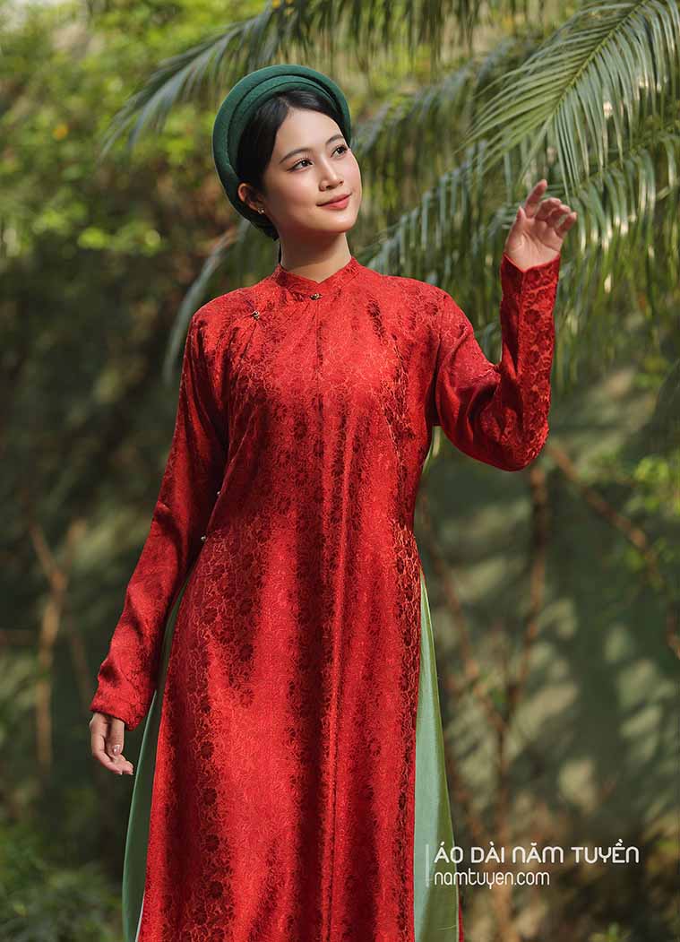 Áo dài nữ truyền thống ngũ thân màu đỏ tươi