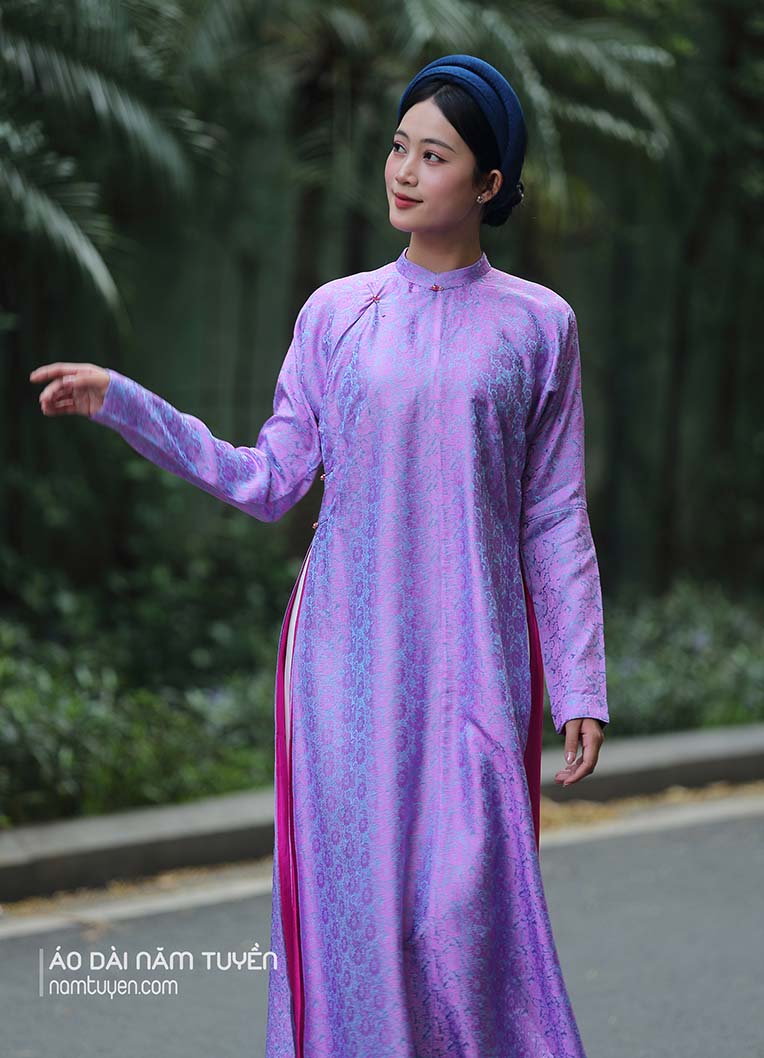 Áo dài nữ ngũ thân lụa tơ tằm tím Huế truyền thống