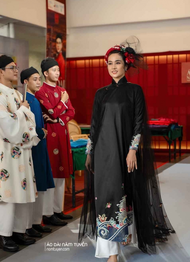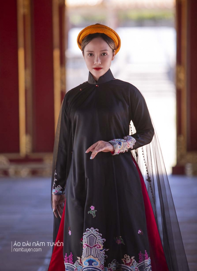 Áo dài ngũ thân của Năm Tuyền luôn được lựa chọn trong những bối cảnh đề cao giá trị truyền thống và hình ảnh phụ nữ Việt: