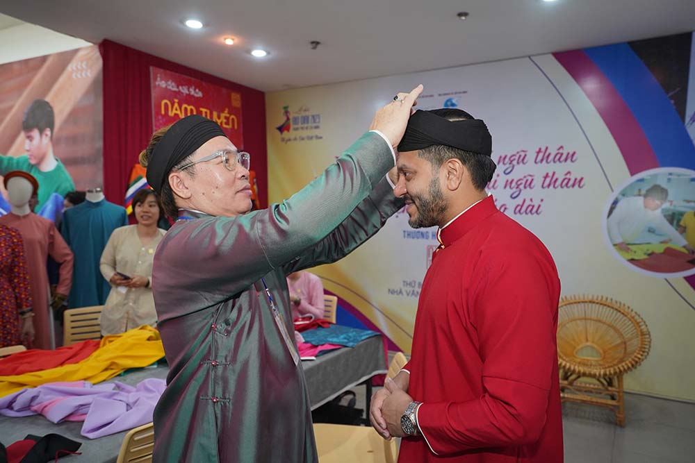Áo dài ngũ thân – biểu tượng truyền thống của dân tộc Việt Nam – được nghệ nhân Năm Tuyền may đo tỉ mỉ dành tặng cho các đại sứ, tổng lãnh sự và đại diện ngoại giao quốc tế. Sản phẩm được thiết kế chỉn chu, trang trọng, phù hợp với các dịp tiếp đón ngoại giao, lễ phục, và sự kiện văn hóa.