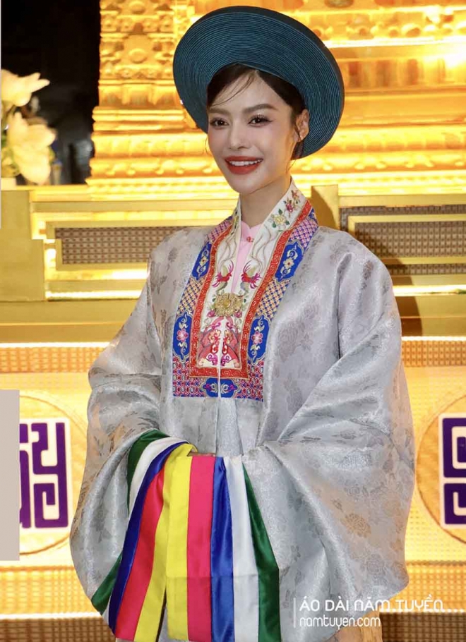 Áo Nhật Bình vốn là trang phục cung đình xưa, gắn liền với hình ảnh các công nương, hoàng hậu thời Nguyễn. Kiểu áo có cổ vuông, nẹp trước, tà rộng, thường được trang trí bằng những hoa văn cung đình tinh xảo tượng trưng cho sự cao quý, trang nghiêm.