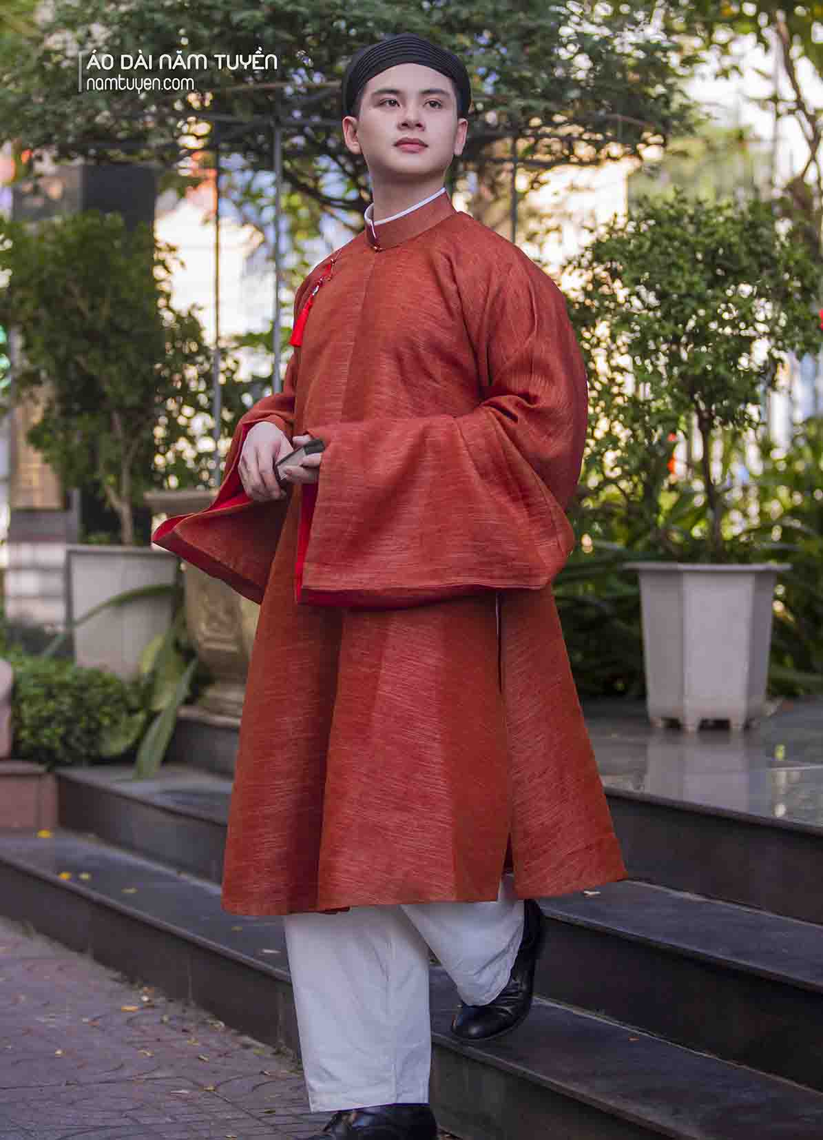 Phom dáng chuẩn truyền thống: thân áo cân đối, tay thụng vừa độ, tạo cảm giác trang trọng nhưng không nặng nề