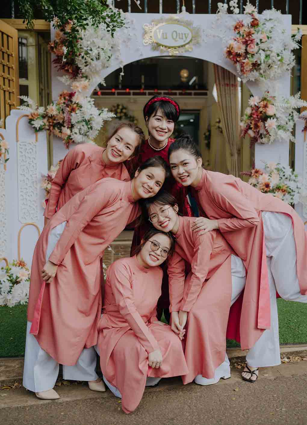 Áo dài bê tráp truyền thống cho nữ nhà gái màu hồng ruốc