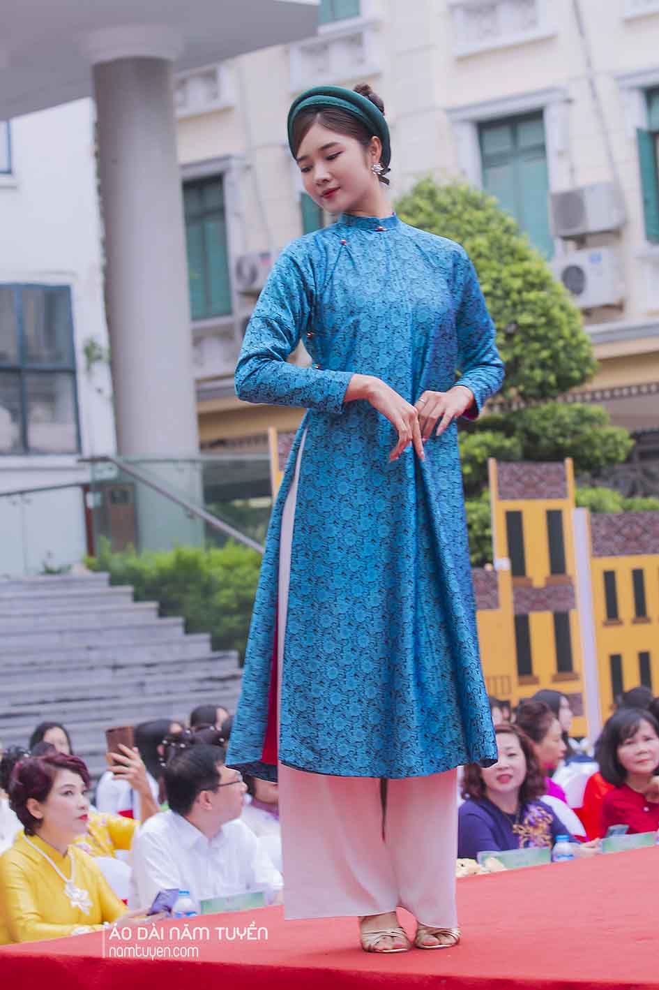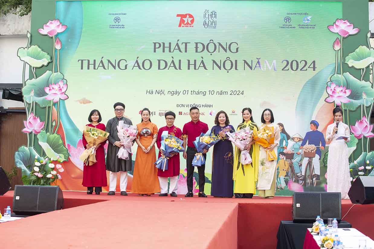 BST Áo dài "Hà Nội Những Sắc Hoa" của Thương hiệu Áo Dài Năm Tuyền trình diễn tại Bảo tàng Phụ nữ Việt Nam trong khuôn khổ Tháng Áo dài Hà Nội năm 2024.