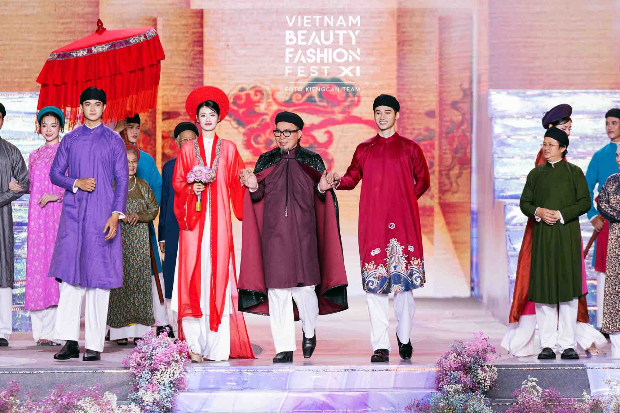 Giữa không gian rực rỡ của Lễ hội Áo dài TP.HCM 2025, một đám cưới được tái hiện sống động qua những bộ áo dài ngũ thân Năm Tuyền mang đậm nét văn hóa dân tộc trong Chương trình nghệ thuật Áo dài - Vietnam Beauty Fashion Fest với chủ đề “Sắc Son Việt Nam”. BST tái hiện hình ảnh một đám cưới truyền thống, nơi những giá trị xưa cũ hòa quyện cùng vẻ đẹp rực rỡ của tình yêu.