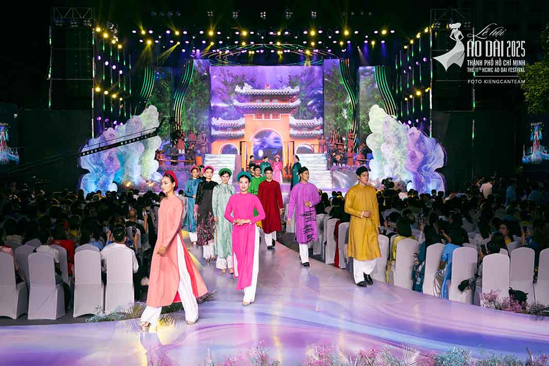 Áo dài Năm Tuyền trong đêm khai mạc Lễ hội Áo dài TP.HCM 2025 với BST “Thành phố Màu Di sản”
