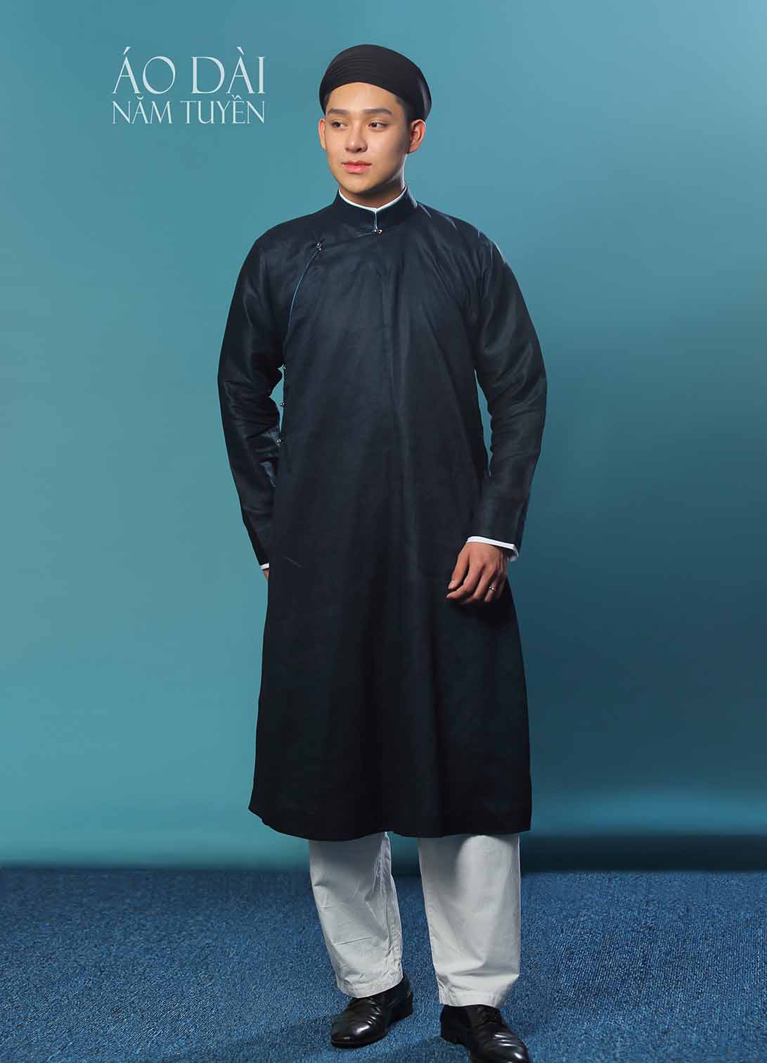 Áo dài nam, áo dài ngũ thân truyền thống màu xanh đen lịch lãm
