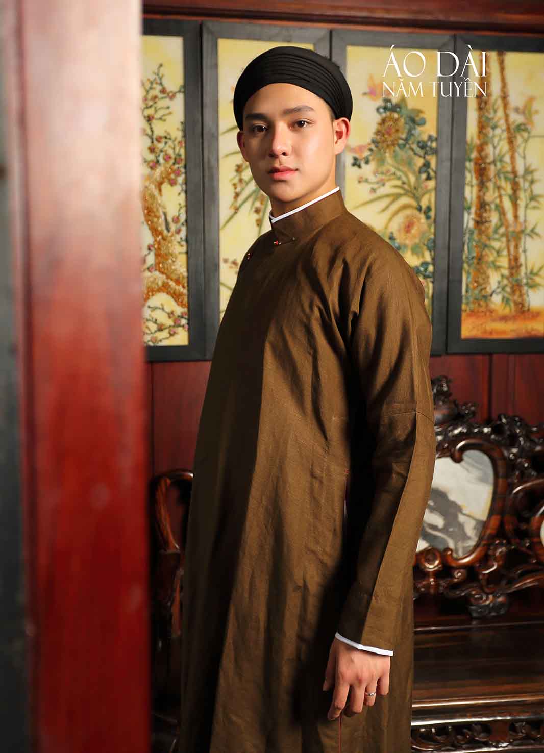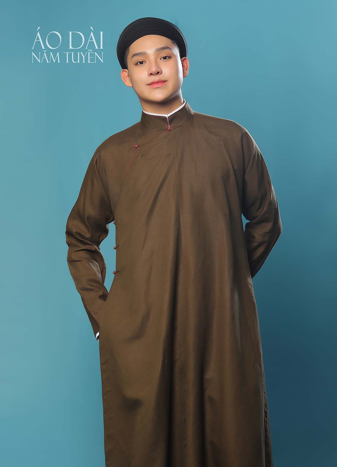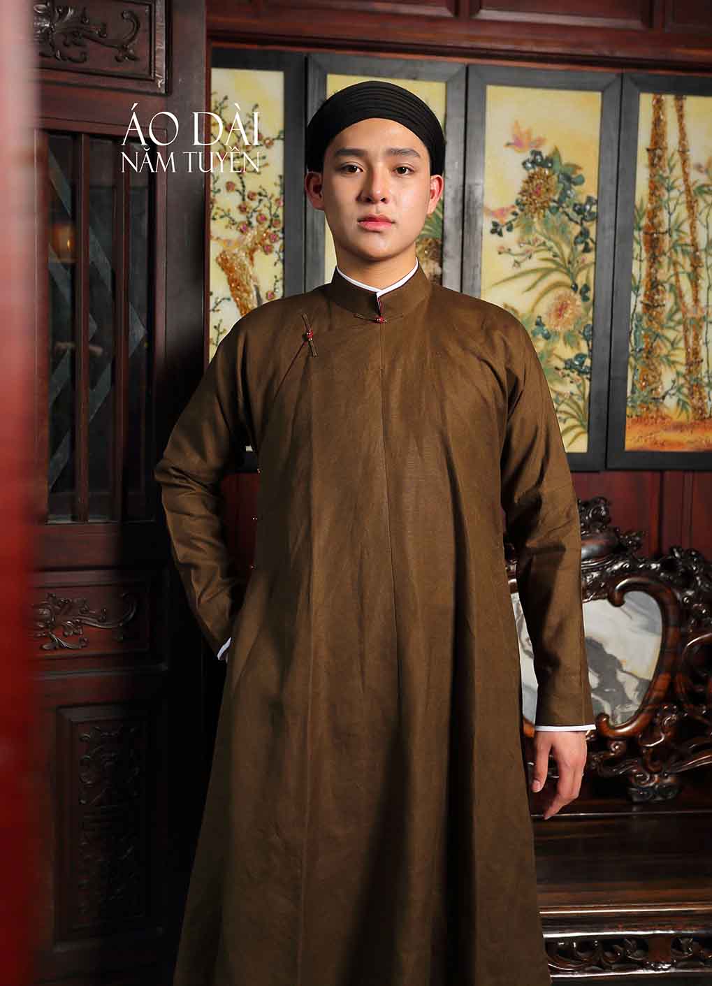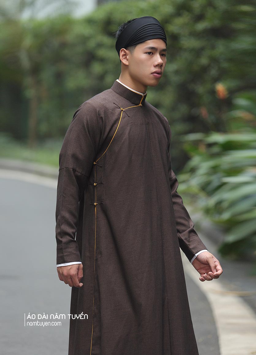 Áo dài nam, áo dài ngũ thân truyền thống màu nâu đậm chất cổ điển