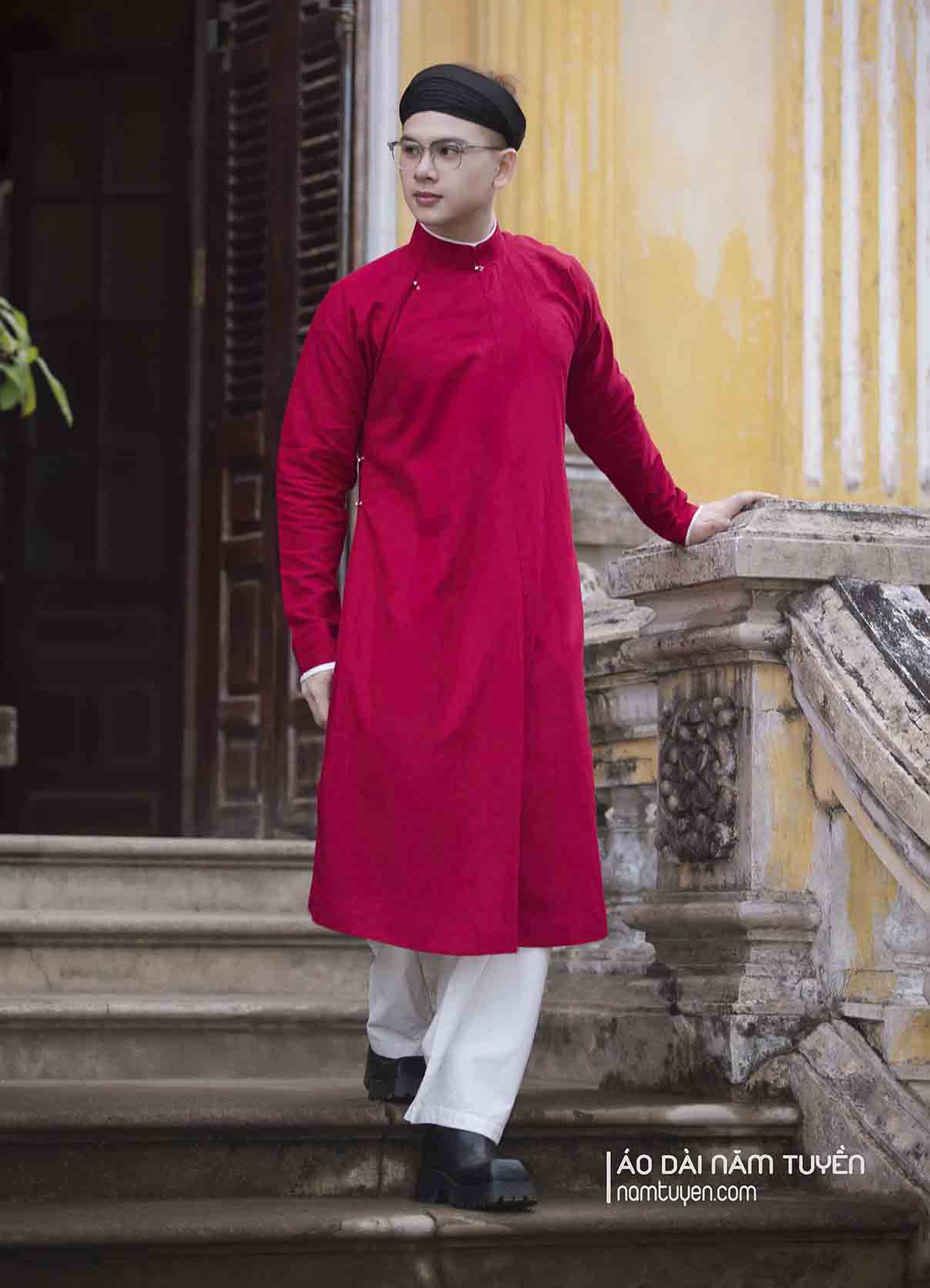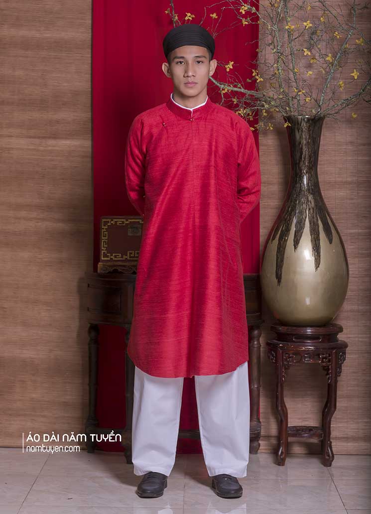 Áo dài nam tay chẽn ngũ thâni đỏ truyền thống