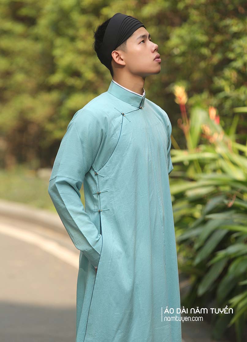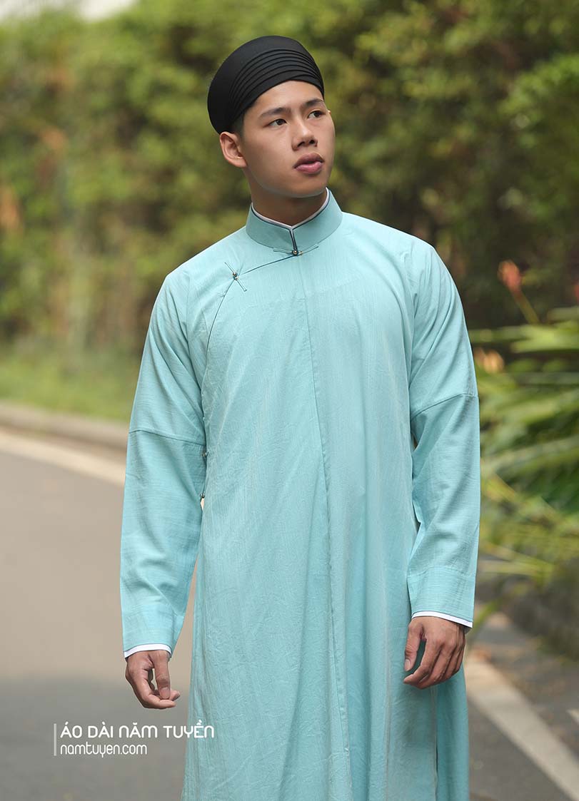 Áo dài nam ngũ thân tay chẽn xanh ngọc truyền thống