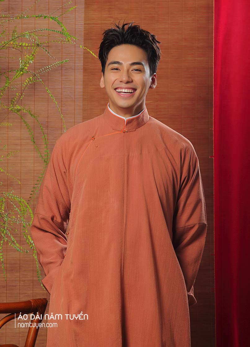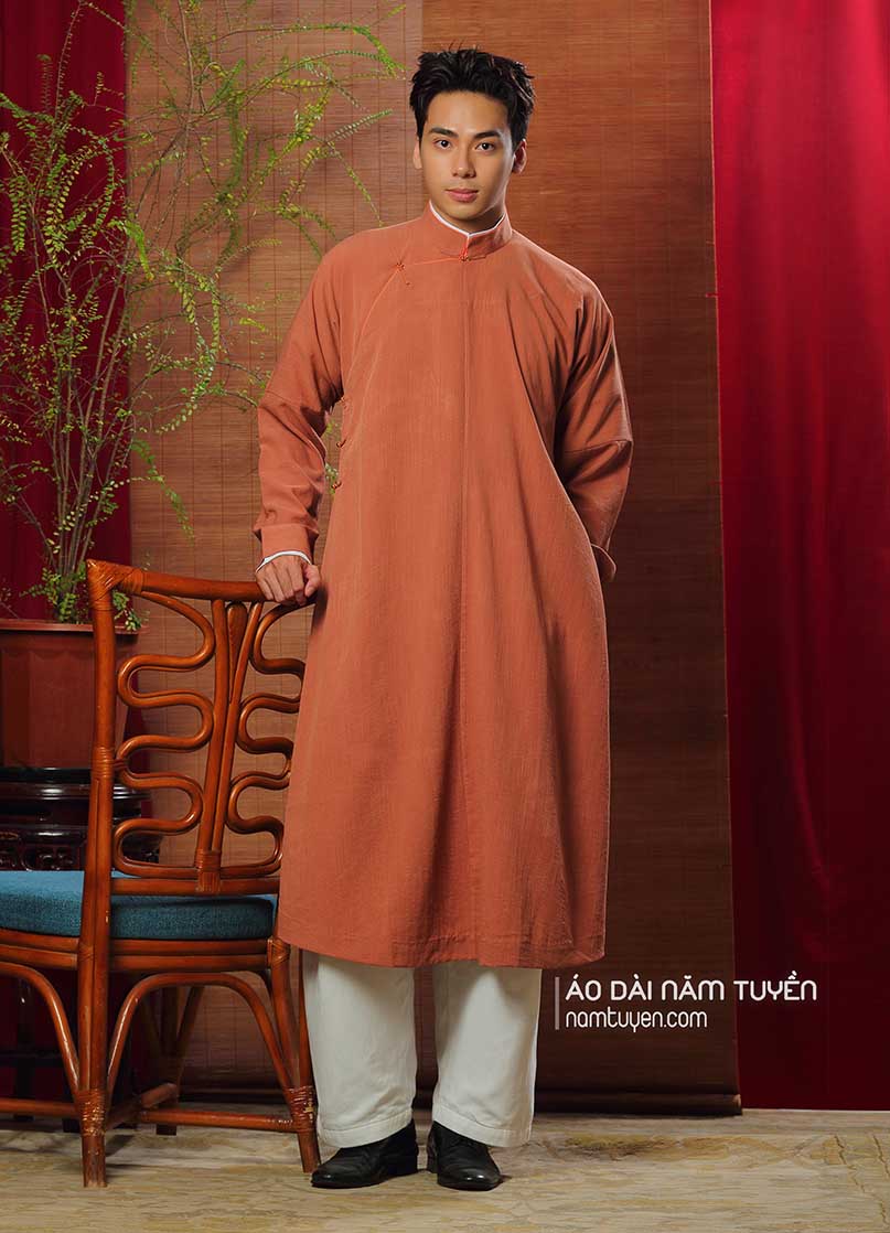 Áo Dài Ngũ Thân Nam truyền thống Màu Cam Đất