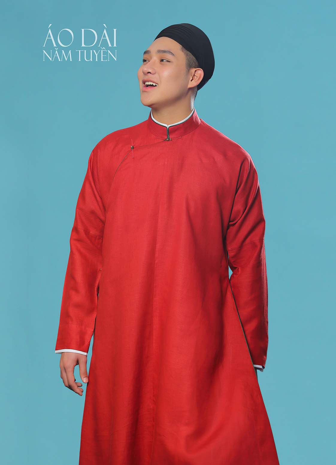 Áo dài ngũ thân nam truyền thống màu đỏ tươi
