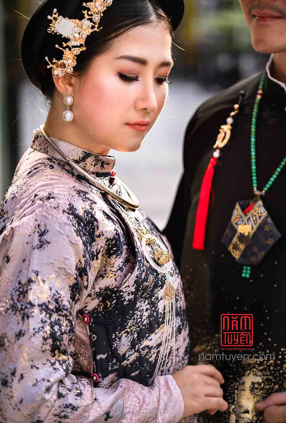 Áo Dài Ngũ Thân Nữ Thêu Hoa Văn Cung Đình