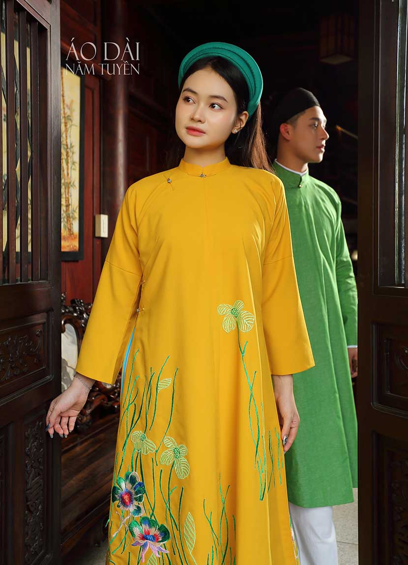Áo dài ngũ thân nữ truyền thống màu xanh bơ cá tính - lựa chọn cho người trẻ yêu cổ phục