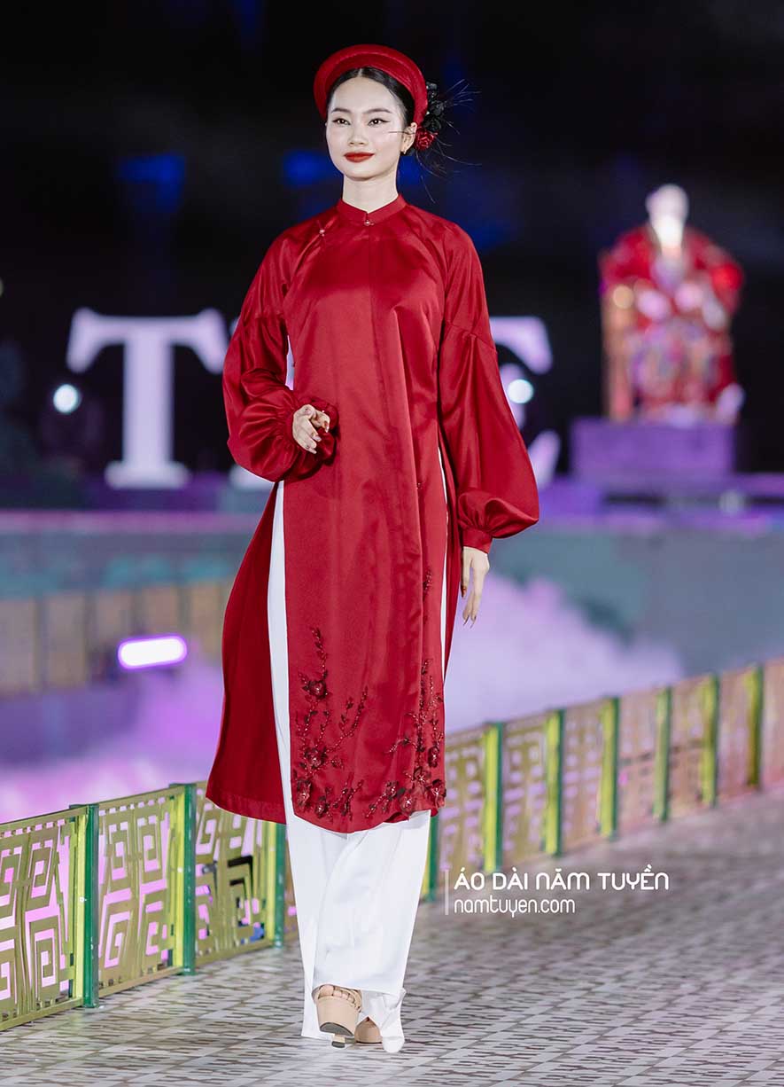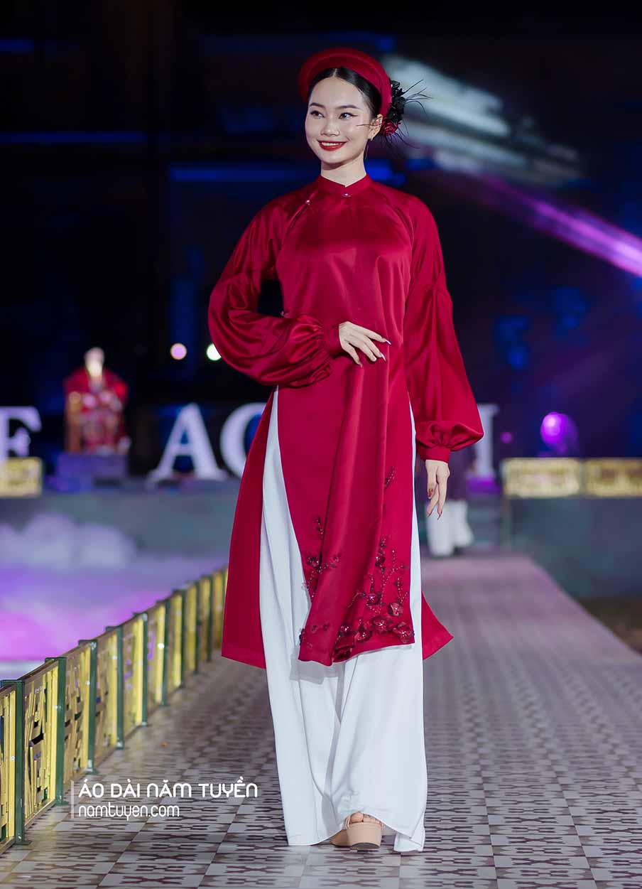 Áo dài ngũ thân nữ đỏ – kiểu tay thiết kế thời trang, tôn dáng