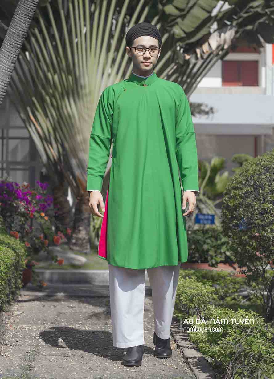 Áo Dài Ngũ Thân Nam truyền thống Màu Xanh Lá trẻ trung